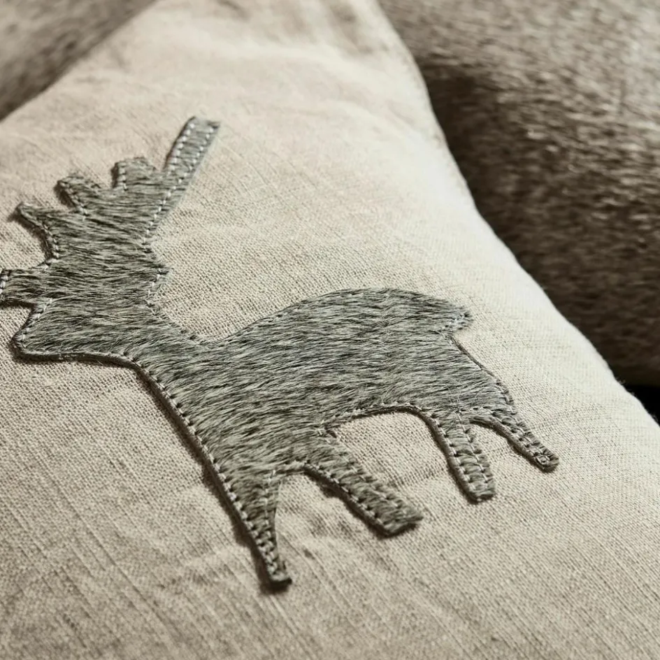 An kühlen Winterabenden kuscheln wir uns gerne gemütlich in eine Sofaecke, gucken einen schönen Film oder lesen in einem Buch, während kleine Kissen uns mal hier, mal da verwöhnen. Wie schön, wenn die Kissen dann optisch wie haptisch in die Saison passen. Bei dieser Kissenhülle im 2er Set erinnert die mit dem hübschen Elch-Duo daran, dass das Weihnachtsfest mit Riesenschritten naht, während die andere mit Kuhfell in Grau-/Braun-Nuancen einem echten Elch-Fell ähnelt und uns dazu verlockt, immer wieder mit der Hand darüber zu streicheln. Mit dieser Kissenhülle im 2er Set verliert der Winter nicht nur seine Schrecken, sondern Sie lassen eine wunderbar gemütliche, stimmungsvolle Atmosphäre entstehen, in der sich jeder sofort wohlfühlt. Das hübsche Elch-Motiv aus Leder wurde von Hand auf reines Leinen appliziert, die Kissenhülle mit der Fell-Vorderseite hat eine Rückseite aus Polyester. Mit verdecktem Reißverschluss auf der Rückseite.