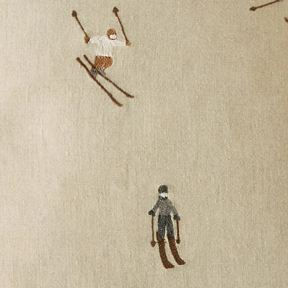 Wenn draußen die ersten Flocken tanzen, sorgt diese Kissenhülle drinnen für den passenden Hauch von Winterromantik. Aus reinem Leinen gefertigt, begeistert sie mit einer lebendigen Szene aus kleinen, aufgestickten Skifahrer – jede Figur liebevoll gestaltet, jede Pose einzigartig. Die natürliche Leinenstruktur verleiht der Oberfläche eine lebendige Haptik und unterstreicht den rustikal-verspielten Charme. Auf der Rückseite lässt sich das Kissen mit schimmernden Perlmuttknöpfen schließen – ein feines Detail, das Funktion und Eleganz vereint. Ob auf dem Sofa, im Lesesessel oder als liebevoller Akzent auf der Fensterbank – dieses Stück bringt den Zauber eines Winterurlaubs direkt in Ihre vier Wände.