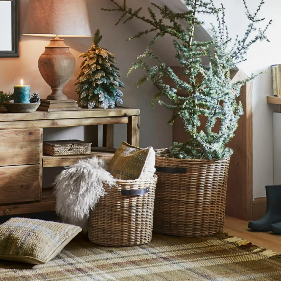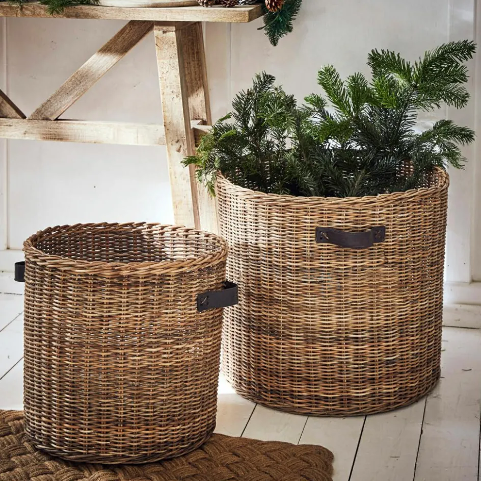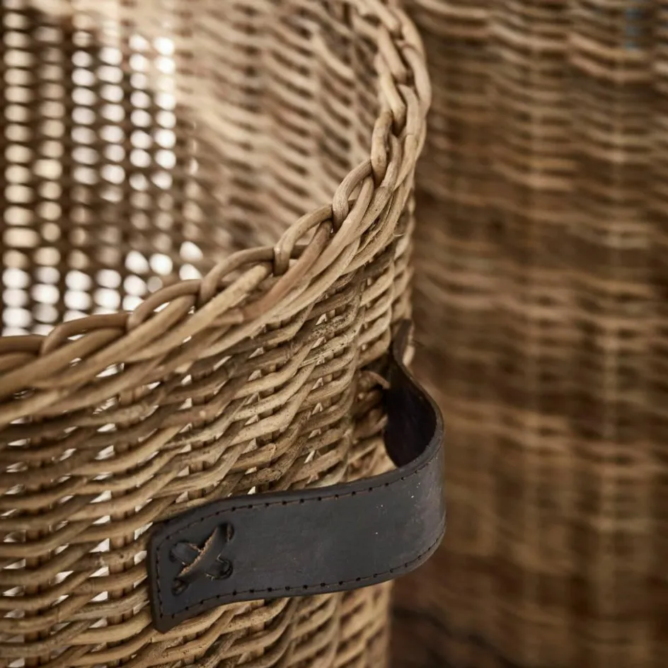 Funktion und ein dekorativer Akzent gehen bei diesen schicken Körben Hand in Hand. Sie bestehen aus wertvollem Rattan mit Henkeln aus Büffelleder – der perfekte Natur-Mix. Das Doppel in zwei Größen ist sehr vielseitig verwendbar und schafft spielend leicht Ordnung zu Hause. Ob Utensilien aus Bad und Küche, Bastel- oder Arbeitsmaterialien, Spielzeug oder Hunde-Accessoires, hier findet alles Platz, sodass Sie Ordnung im Haus und immer die Übersicht über Ihre Schätze haben. Von der natürlichen und klassischen Optik profitiert zudem jedes Interieur.