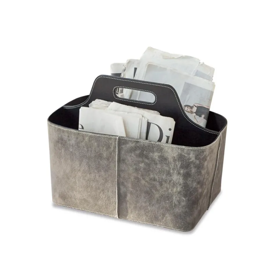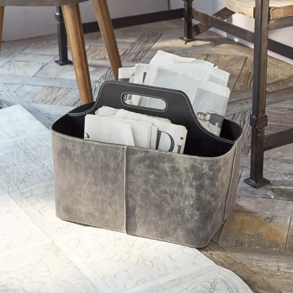 Das perfekte Accessoire für alle, die gerne ausgiebig die Zeitung lesen und stets die Lieblingshefte im Hause haben, ist dieser stilvolle Korb. Bezogen ist er mit einem sehr schönen und hochwertigen Bezug aus feinstem Büffelleder. Die Innenseite ist mit langlebigem Vinyl ausgestattet. In den zwei Fächern können Tageszeitung, Magazine und Zeitschriften perfekt sortiert und ordentlich aufbewahrt werden. So sind sie immer griffbereit und das Lesevergnügen kann beginnen. In der Mitte ist ein komfortabler Griff eingearbeitet. So kann das schöne Stück ganz unkompliziert transportiert werden und es wird dort gelesen, wo sie sich gerade am liebsten gemütlich niederlassen möchten, um die Lektüre zu studieren. Ob am Sonntagmorgen mit Kaffee oder Tee am Frühstückstisch, gemütlich auf der Chaiselongue oder auf dem Lesesessel – oder möchten Sie bei gutem Wetter lieber auf der Terrasse oder gar im Strandkorb die Seiten durchblättern? Mit diesem Must-Have ist einfach alles möglich. Auch im Arbeitszimmer erweist sich das schöne Teil als äußerst angenehm. Hier eignet es sich für wichtige Fach-Magazine oder Kataloge. Und wenn sie gerade benötigt werden, sind sie sofort zur Hand. Das zeitlos schöne Design lässt sich hervorragend kombinieren. Es passt gleichermaßen zu zeitgenössischem, ländlichem oder rustikalem Interior.