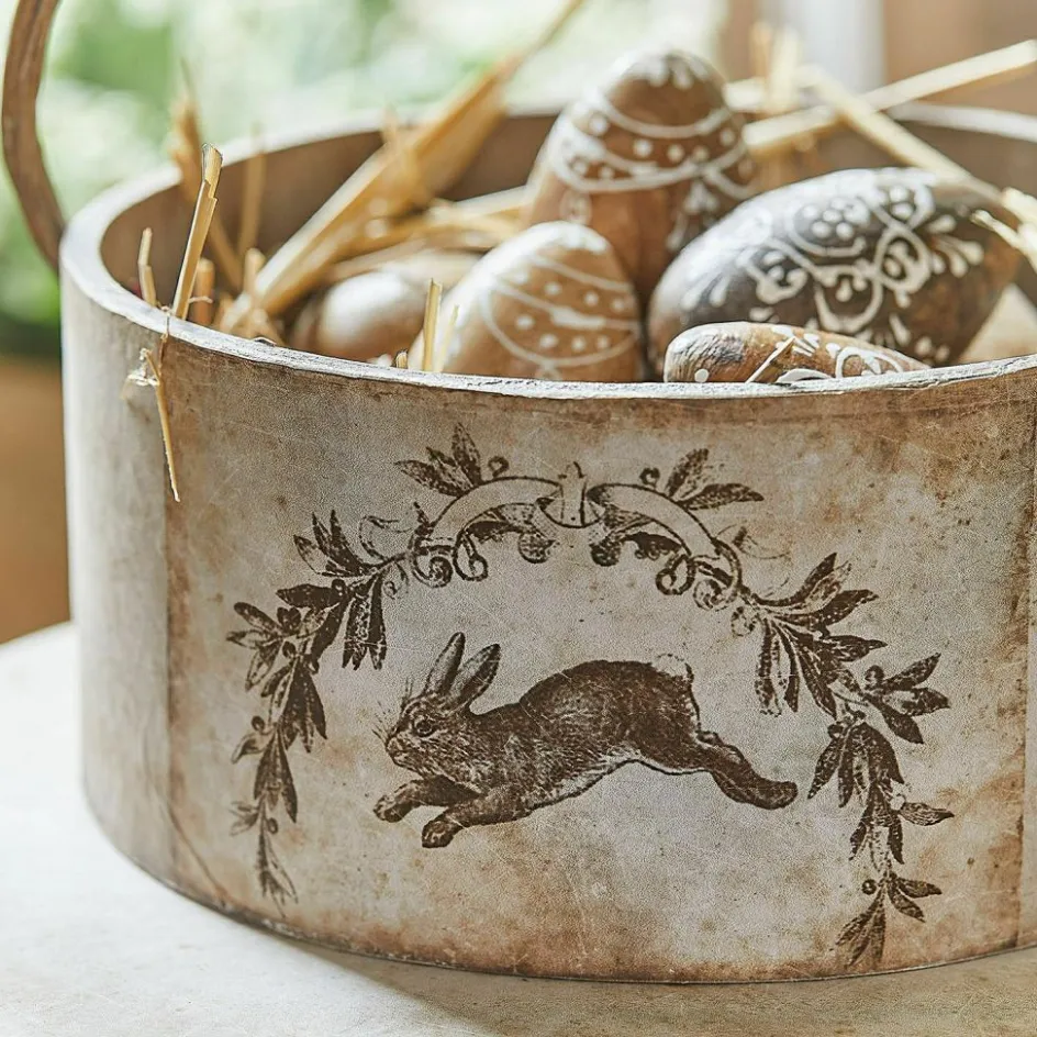 Das 2er-Set dieser dekorativen Holzboxen vereint Funktionalität mit einem nostalgischen Design. Die aufwendig bedruckten Papierverzierungen, die liebevoll angeordneten floralen Muster und der charmante Hasendruck machen diese Boxen zu einem wahren Blickfang in jedem Raum. Die robusten Eisenhenkel in täuschend echter Holzoptik sind nicht nur praktisch, sondern fügen sich harmonisch in das rustikale Gesamtbild ein. Ob als Aufbewahrungsmöglichkeit für kleine Schätze oder als stilvolles Dekorationselement auf dem Regal – diese Boxen bieten Platz und Charme in einem.