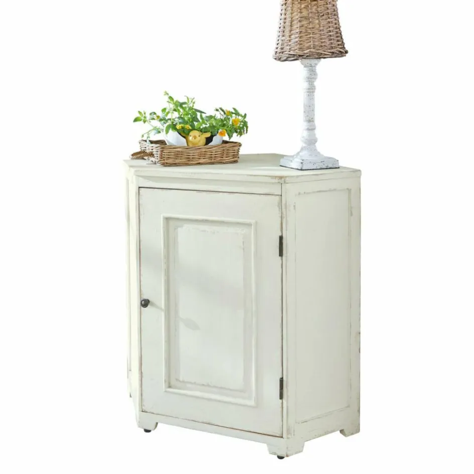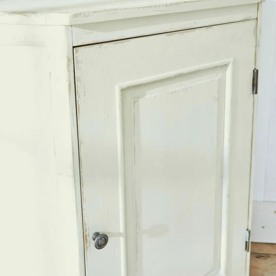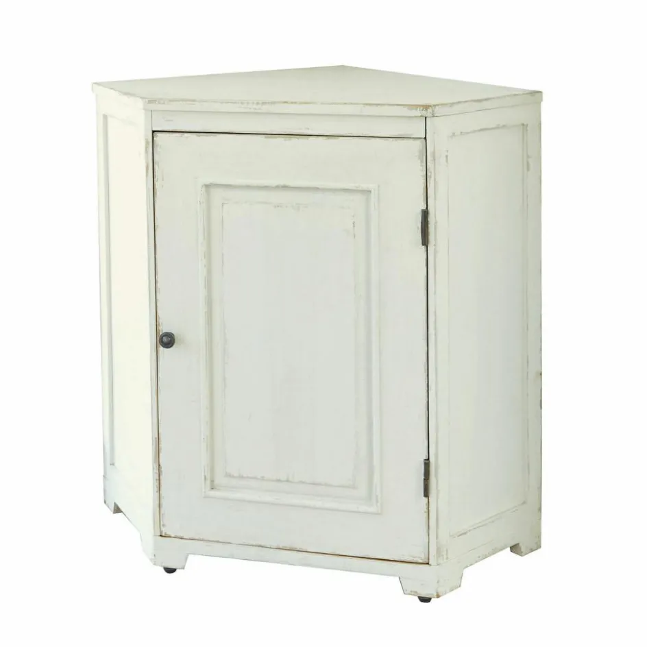 Diese sehr schöne Eckkommode hat ganz besonderes Flair. Sie besteht aus Tannenholz, Kiefernholz und Furnierschichtholz im harmonischen Mix und ist mit einem authentischen Antik-Finish verziert. So versprüht sie nostalgisches Flair und fügt sich wunderbar in Ihr Zuhause ein. Jede Ecke wird sich über diesen Blickfang freuen – und Platz bietet sie zudem auch. Das edle Design hat einen Einlegeboden und reichlich Stauraum für diverse Dinge. Diese formschöne Kommode erinnert an einen wertvollen Fund aus früheren Tagen, sodass sie eine stimmige Ergänzung zum Shabby-Chic ist. Obenauf könnten Kerzen, Vasen oder eine Lampe Platz finden und eine gekonnte Dekoration zaubern. Auf Wunsch erhalten Sie bei uns auch den perfekt passenden Couchtisch (22998) zu diesem stilvollen Design.