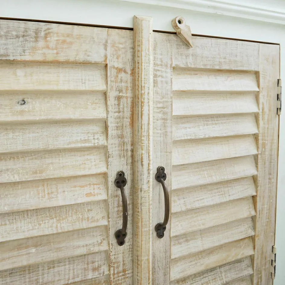 Diese Kommode bringt den authentischen Charme des Landhaus-Stils direkt in Ihr Zuhause. Aus massivem Mangoholz gefertigt, besticht sie durch ihre langlebige Qualität und die weiß gekalkte Oberfläche, die einen Hauch von Vintage-Flair verleiht. Die charakteristischen Lamellentüren mit ihrem originellen, praktischen Verschluss fallen sofort ins Auge und bieten zusammen mit den drei geräumigen Schubladen ausreichend Stauraum für Ihre Alltagsgegenstände. Ob im Wohnzimmer, Flur oder Schlafzimmer – dieses Möbelstück verleiht jedem Raum eine gemütliche und einladende Atmosphäre. Die Kombination aus rustikaler Ästhetik und praktischer Funktion macht diese Kommode zu einem unverzichtbaren Begleiter im Landhaus-Stil.
