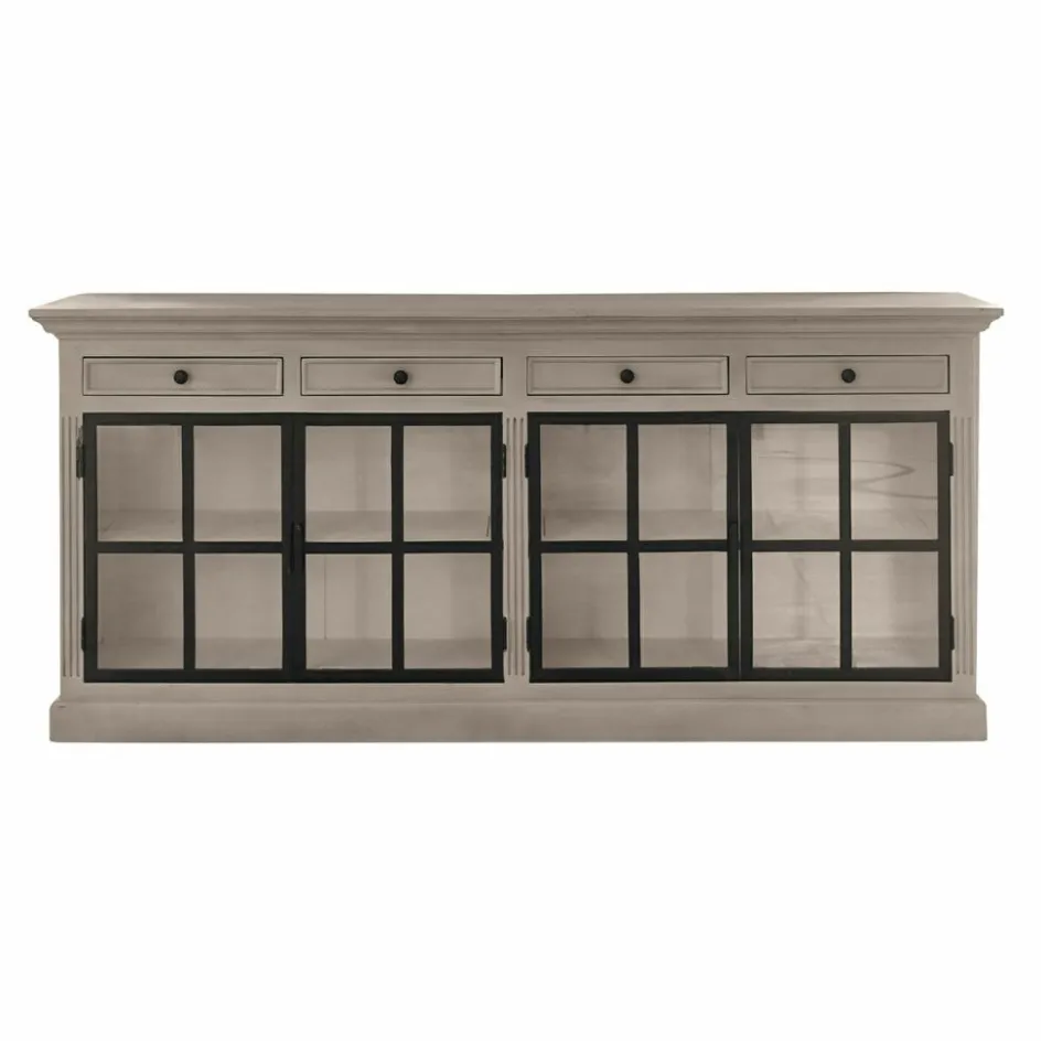 Diese Kommode ist ein Paradebeispiel für zeitlose Eleganz im Landhaus-Stil. Gefertigt aus hochwertigem Mangoholz, bietet sie nicht nur eine robuste und langlebige Struktur, sondern auch ein warmes, einladendes Ambiente. Die großen Glasfronten betonen die visuelle Leichtigkeit und Transparenz, während sie zugleich eine effektive Präsentation und Organisation der liebsten Dekorationsstücke oder Alltagsgegenstände ermöglichen. Schubladen bieten zusätzlichen privaten Stauraum, und das sanft abgestimmte Farbschema harmoniert mit vielfältigen Einrichtungsstilen. Diese Kommode ist mehr als nur ein Möbelstück, sie ist eine Bereicherung für jedes Zuhause, die Funktionalität und Formschönheit auf attraktive Weise vereint.
