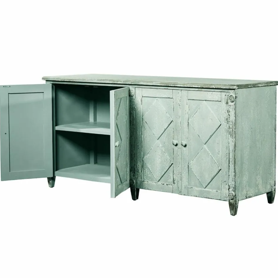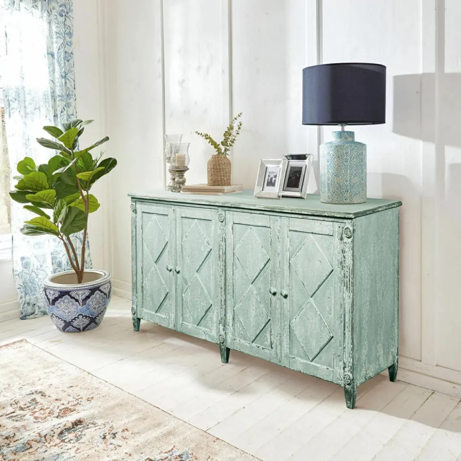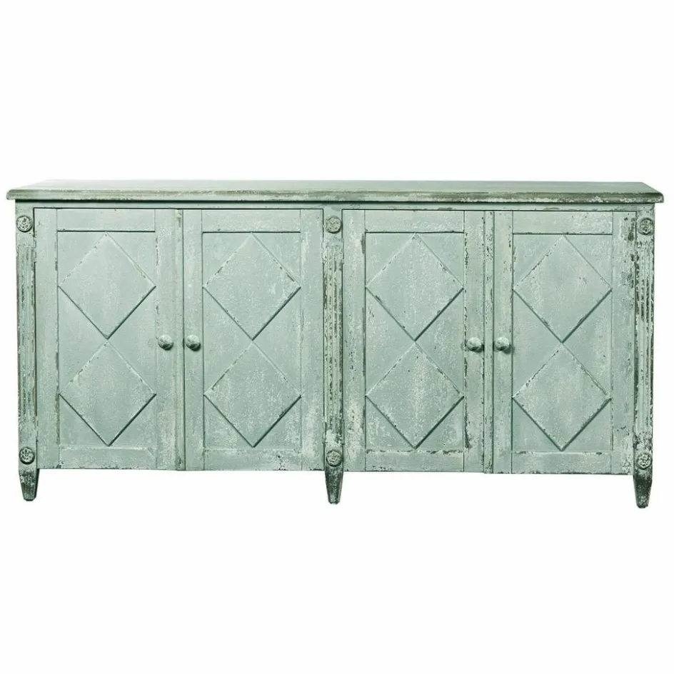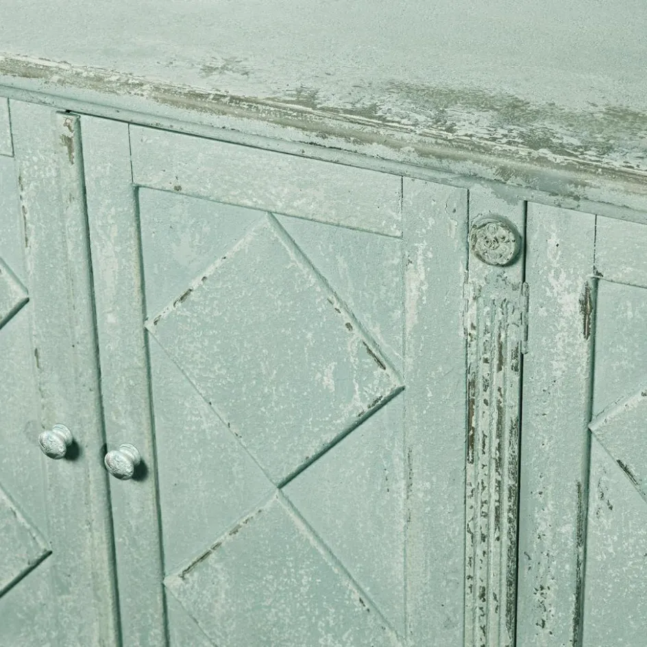 Diese exquisite Kommode, die in der kunstvollen Shabby Chic-Ästhetik gehalten ist, verkörpert einen romantischen Geist mit einem Hauch von Nostalgie. Jedes Detail, von den abgenutzten Ecken bis hin zu den dezenten Schnitzereien, wurde bedacht gewählt, um eine Atmosphäre zu schaffen, die sowohl warm als auch einladend ist. Diese Kommode ist ein Stück handwerklicher Tradition, das Ihrem Raum Persönlichkeit und einen einzigartigen Charakter verleiht. Ob in Ihrem Schlafzimmer, im Wohnzimmer oder im Flur, sie bietet nicht nur großzügigen Stauraum, sondern dient auch als einzigartiges Gesprächsstück, das die Geschichte Ihrer individuellen Ästhetik erzählt.