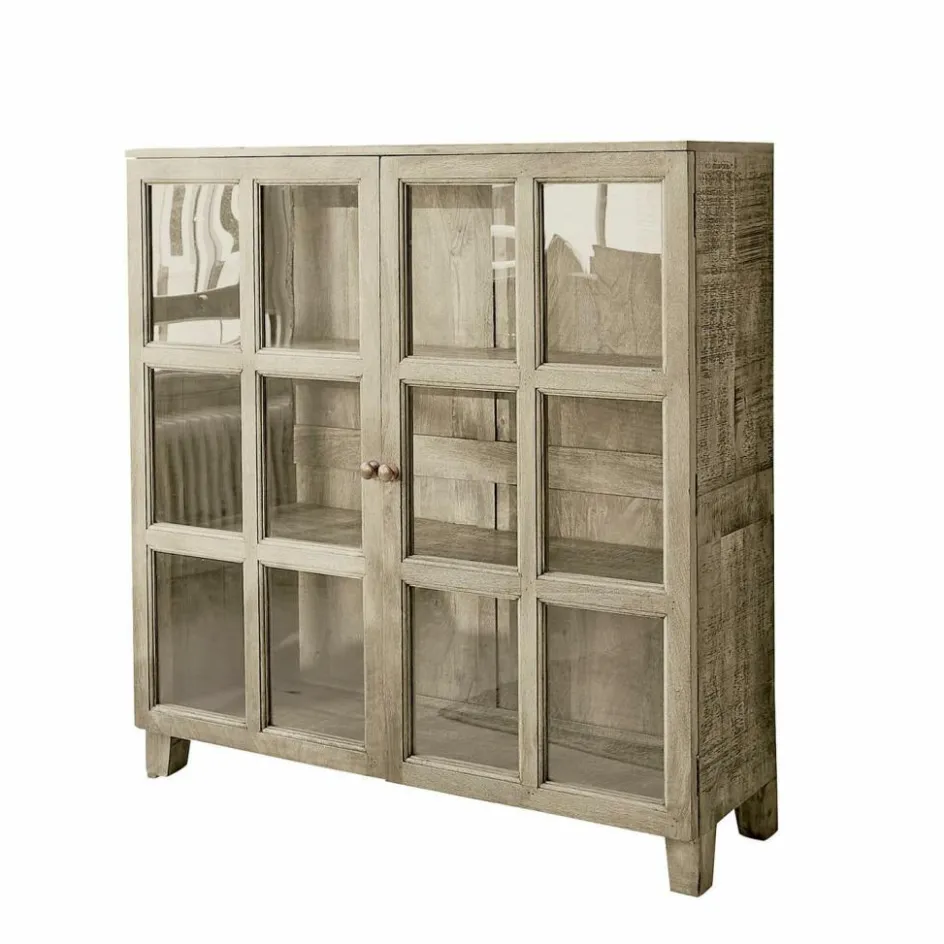 Ganz viel ländlichen Charme verbreitet diese Kommode in ihrer handwerklichen Perfektion – und dennoch wirkt sie zeitgemäß durch ihre Qualität aus massivem Mangoholz. Die Oberfläche ist lasiert und gewachst – so kommt die schöne Maserung und Farbe des Holzes ideal zur Geltung. Die dekorativen Glastüren im Sprossenfenster-Look verleihen dem Möbel eine optische Leichtigkeit. Gleichzeitig gewähren sie den Blick in den Innenraum, der durch drei großzügige Fächer ausreichend Stellfläche bietet. Ein gelungener Mix aus Design und Funktion, der sich in einem Landhaus-Interieur ebenso sehen lassen kann, wie in einer Vintage angelehnten Einrichtung. In der Küche findet das Geschirr seinen Platz, im Wohnzimmer können Bücher aufbewahrt oder hübsche Accessoires zur Schau gestellt werden.