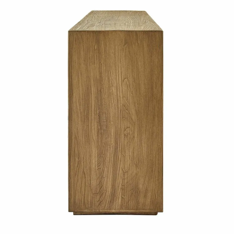 Klar in der Form, kraftvoll in der Wirkung – diese Kommode begeistert mit einem rustikalen Look, der auf Authentizität setzt. Gefertigt aus wiederaufbereitetem Ulmenholz, lebt sie von der individuellen Maserung, feinen Rissen und natürlichen Unebenheiten, die ihr einen ganz eigenen Charakter verleihen. Die strukturreiche Oberfläche erinnert an verwittertes Holz in alten Werkstätten oder ländlichen Scheunen – bewusst unperfekt und gerade deshalb so charmant. Die vier Türen fügen sich nahtlos ins reduzierte Design ein und machen die Kommode zum funktionalen Begleiter mit stilvollem Understatement. Ob im Esszimmer, Flur oder Wohnzimmer – dieses Stück wirkt geerdet, ehrlich und souverän.
