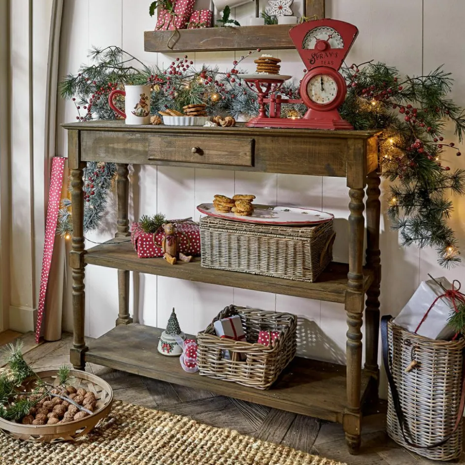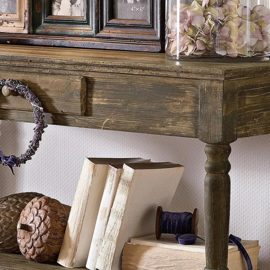Dieser Konsolentisch aus Tannenholz findet durch die geringe Tiefe überall noch ein Plätzchen! Durch die Antik-Lasur und die liebevoll gedrechselten Beine wirkt er wie ein Familienerbstück und setzt in jedem Raum wohnliche Akzente. Schön im Wohnzimmer mit zwei gemütlichen Tischlampen, im Bad für eine Handtuchauswahl auf den beiden Ablagen oder in der Küche für Geschirr & Co. In der Schublade finden Kleinigkeiten ihren Platz.