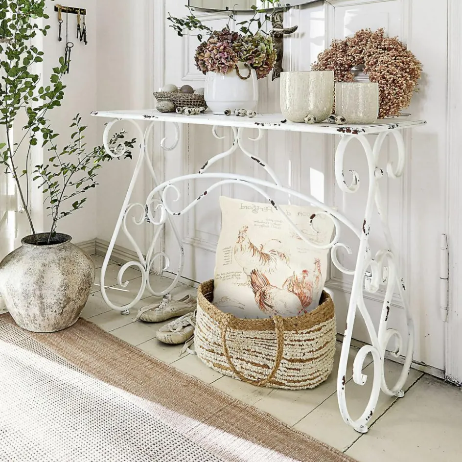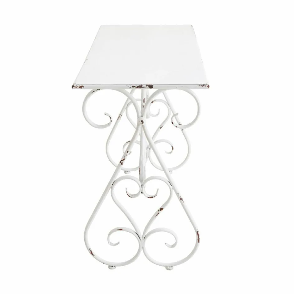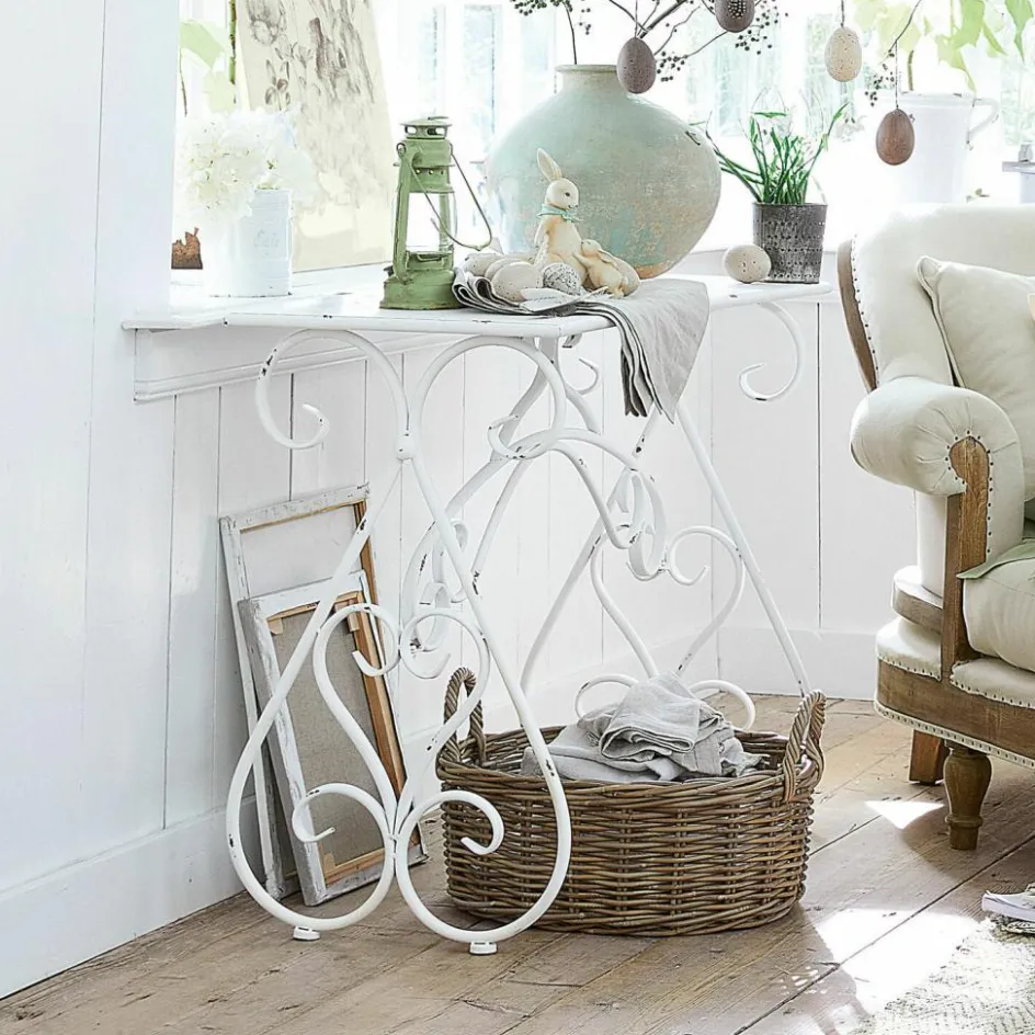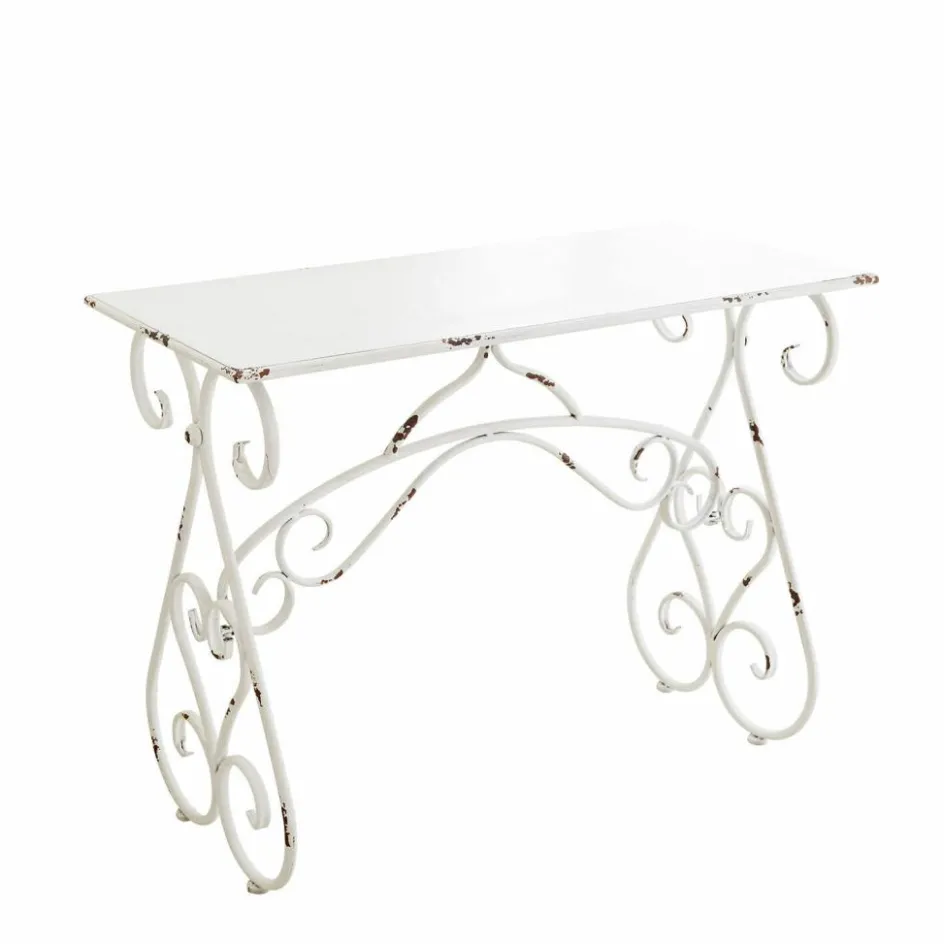 Dieses wunderschöne Stück punktet nicht nur mit handgearbeiteter Raffinesse, sondern auch mit einem Look, der Leichtigkeit und Lebensfreude verkörpert. Das kunstvoll geschwungene Gestell zeugt vom hohen handwerklichen Anspruch des Herstellers und ist ebenso wie die Platte aus hochwertigem Eisen gefertigt. Die Konsole ist aufwendig lackiert und veredelt, um den Eindruck einer echten Antiquität zu erwecken. Der einzigartige Look, mit all seinen Feinheiten, wird nicht nur Shabby-Chic-Fans begeistern. Die handgearbeiteten Details machen jedes Exemplar zu einem Unikat, das Ihrem Zuhause einen Hauch von Luxus verleiht.
