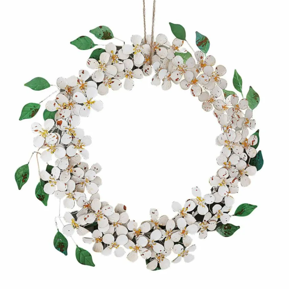 Kränze eignen sich ideal zum Dekorieren. Dieses Modell repräsentiert dazu noch höchste Handwerkskunst. Denn die filigranen Blüten sind aufwendig aus Eisen geschmiedet und wirken so authentisch, wie ihre Vorbilder aus der Natur. Auch die zarten Blätter zeigen sich aus der Nähe betrachtet eindrucksvoll naturgetreu. Und damit das Bild noch reizvoller wirkt, werden Blüten und Blätter liebevoll mit einem Antik-Finish veredelt. Ein stimmungsvoller Blumenzauber, der nie verblüht und viele Jahre aufs Neue erfreut. An ihrer Haustür sorgt der Kranz für einen frühlingshaften Willkommensgruß, auf Ihrer festlichen Ostertafel wird er in Kombination mit Kerzen zum optischen Highlight.