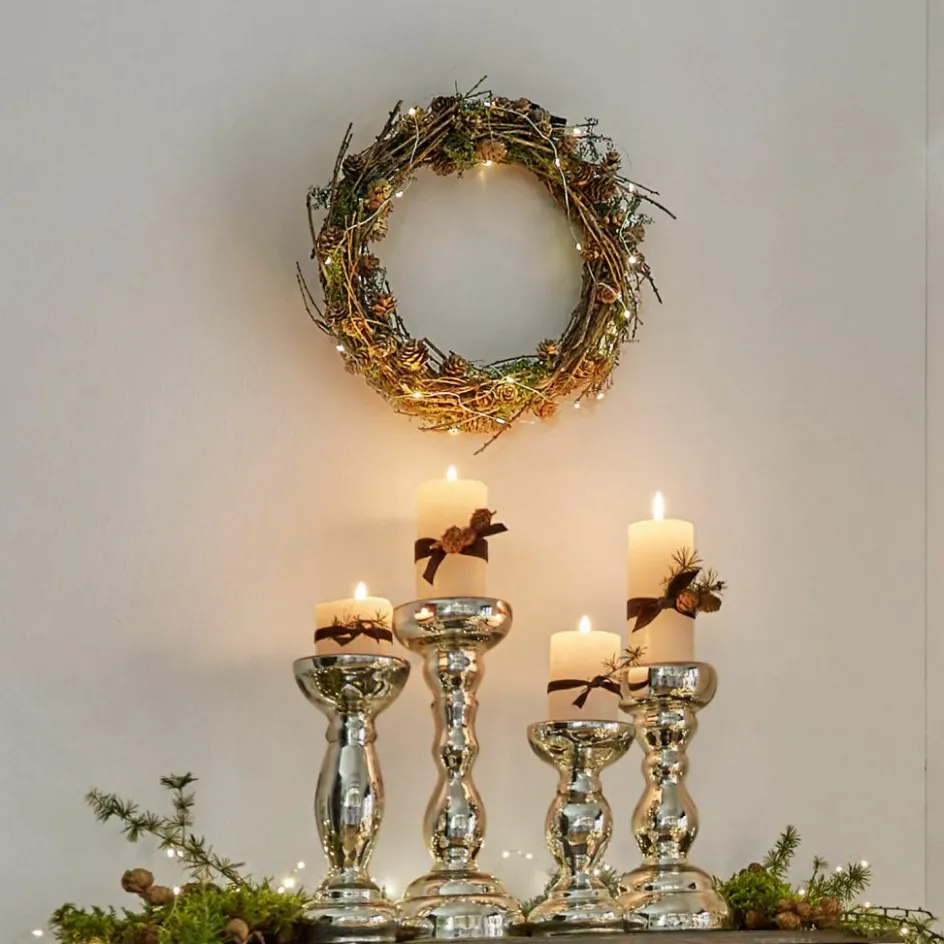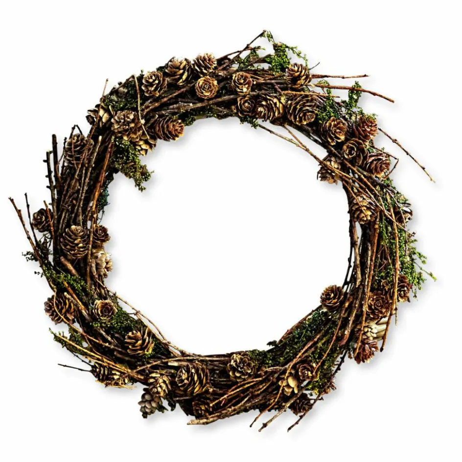 Holen Sie sich ein Stück echte Natur in Ihre vier Wände und begrüßen Sie die festlichen Tage mit diesem wundervoll natürlichen Kranz: Hier sind Kiefernholzzweige und Kiefernzapfen mit Moosgräsern verbunden. Hier ist nichts künstlich, sondern alles kunstvoll vereint. Befestigen Sie den zauberhaften Kranz an der Wand in Ihrem Eingangsbereich und lassen Sie ihn wirken, wenn Sie Freunde und Bekannte willkommen heißen. Hängen Sie ihn an einen Ständer, um ihn in Szene zu setzen, oder schmücken Sie damit Ihren Tisch für die Familie und Ihre Gäste. Der prächtige Kranz kommt überall perfekt zur Geltung und verbreitet an jedem Ort festliche Weihnachtsstimmung!