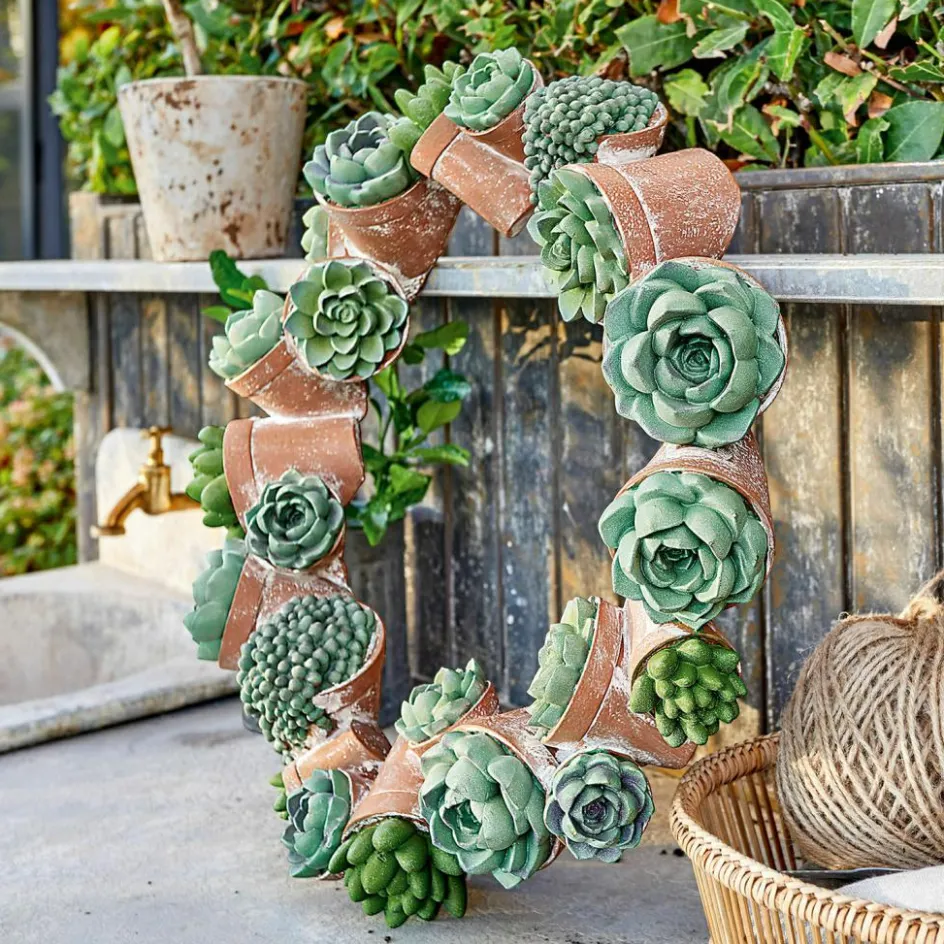 Ist es nicht ein zauberhaftes Schmuckstück, das wie echt aussieht? Freuen Sie sich auf einen außergewöhnlichen Look mit realistischen Nachbildungen von Sukkulenten. Hängen Sie das zauberhafte Schmuckstück, das von Hand bemalt ist, an Ihre Haustür oder setzen Sie es als Dekoration auf Ihrem Tisch für Ihre Familie und Freunde in Szene. Auch in Ihrem Eingangsbereich wird der Kranz prächtig wirken, wenn Sie Gäste willkommen heißen. Für charmante Stimmung ist er die ideale Wahl!