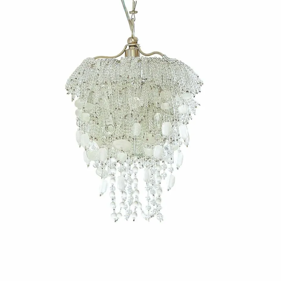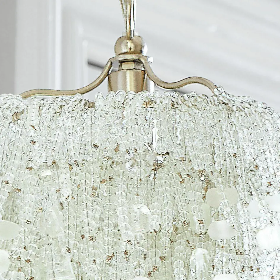 Verleihen Sie Ihrem Raum eine Prise Raffinesse mit diesem exquisiten Leuchter. Das fein gearbeitete Eisengestell, in einem eleganten Silberglanz, bildet das perfekte Fundament für die unzähligen Glasperlen, die in klaren und matten Tönen schimmern. Diese sorgfältig angeordneten Perlen fangen das Licht auf eine Weise ein, die den Raum in ein sanftes, funkelndes Licht taucht. Ob über dem Esstisch, im Wohnzimmer oder in einem gemütlichen Leseeck – dieser Leuchter ist mehr als nur eine Lichtquelle, er ist ein Kunstwerk, das Ihr Zuhause erstrahlen lässt.