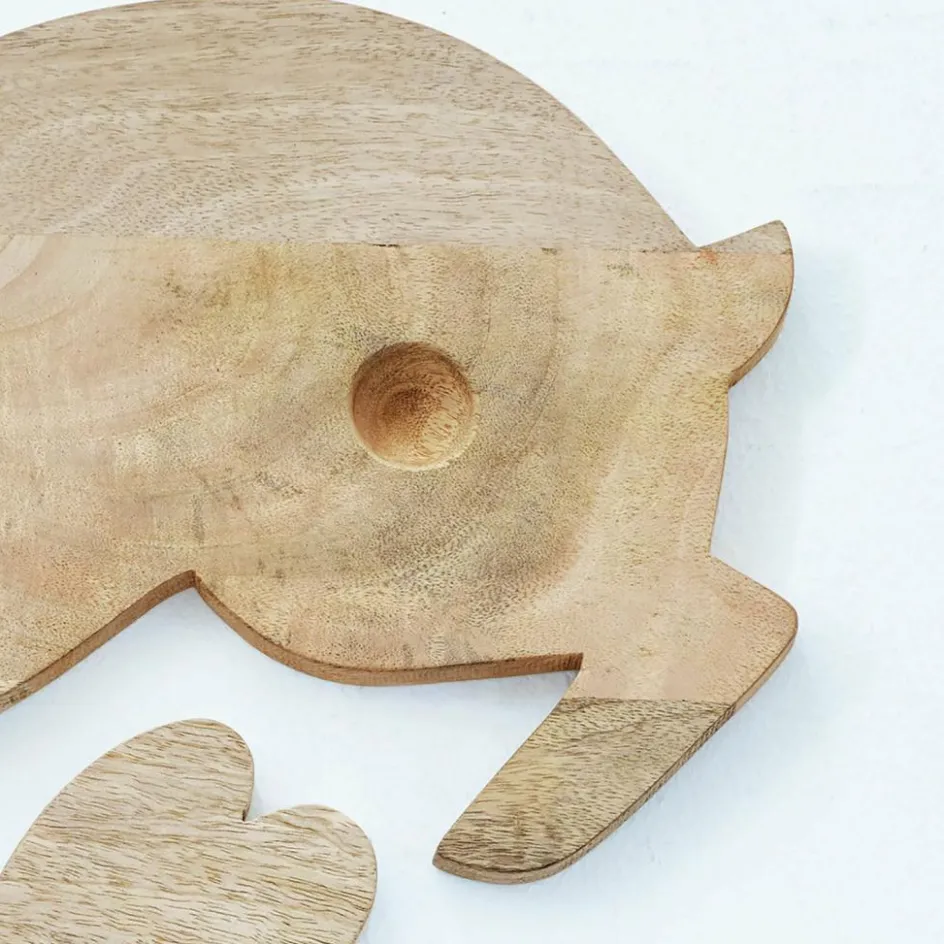 Beginnen Sie den Tag mit einem Lächeln, dank dieses bezaubernden Frühstücksbrettchen-Sets aus naturbelassenem Mangoholz. Jedes Brettchen ist in einer niedlichen Hasenform gestaltet, die sowohl Kinder als auch Erwachsene erfreut. Das warme, natürliche Holz strahlt eine gemütliche Atmosphäre aus und die sorgfältig gearbeiteten Details verleihen jedem Stück einzigartigen Charme. Besonders praktisch ist die integrierte Mulde, die Ihr Frühstücksei sicher an Ort und Stelle hält und so für ein entspanntes Frühstück sorgt. Ob für den täglichen Gebrauch oder als besonderes Highlight bei einem festlichen Brunch – dieses Brettchen-Set ist eine wunderbare Ergänzung für Ihre Küche und ein originelles Geschenk für Freunde und Familie.