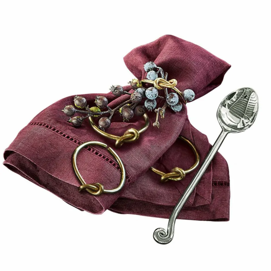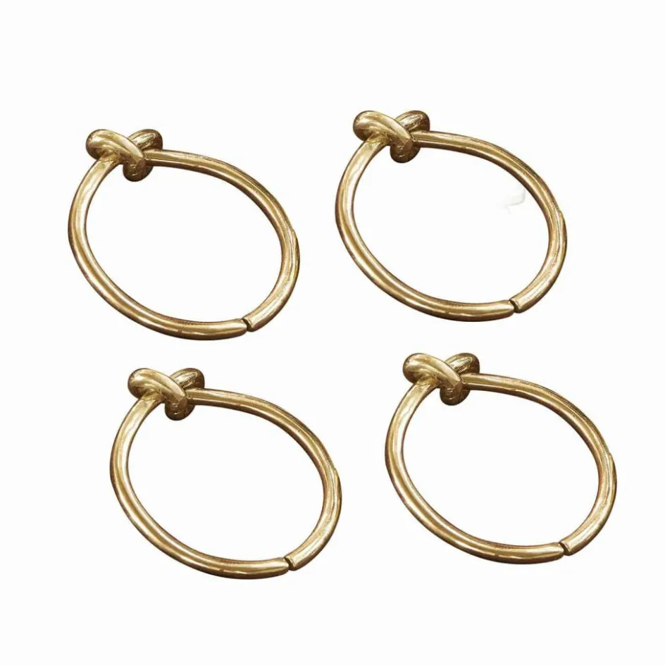 Dieses Quartett aus edlen Serviettenringen setzt Ihre Tafel das ganze Jahr über ins beste Licht. Sie bezaubern mit Eleganz und glamouröser Note und sind sorgfältig von Hand gefertigt. Die schicken Designs bestehen aus glänzendem Messing mit feinem Knoten-Detail. Sie sind sehr klassisch und zeitlos in der Optik, sodass sie zu jedem Ambiente gut aussehen. Solch hübsche Details sorgen für einen liebevoll gedeckten Tisch, was zu Ostern, Geburtstagen oder Weihnachten eine Freude ist. Doch auch zum romantischen Dinner oder dem Sonntagsbrunch zu Hause sind diese ästhetischen Designs immer eine gute Wahl. Da der Knoten ein wenig an das Symbol der Unendlichkeit erinnert, ist es vielleicht auch unser Tipp für eine Hochzeit – ob als Tuschschmuck oder Geschenk.