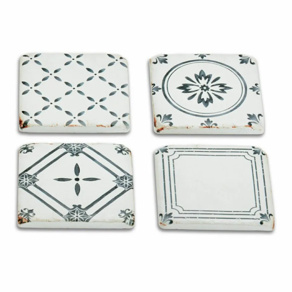 Dieses Set besteht aus vier besonders hochwertigen Untersetzern in Kachel-Optik. Jedes Stück bietet zwar sein eigenes Design, aber als Ganzes harmoniert das Quartett wunderbar miteinander. Kaufen Sie am besten gleich zwei Sets, um eine festlich gedeckte Tafel damit zu schmücken. Der charmante Vintage-Look gerät nie aus der Mode und passt wirklich in jedes Ambiente, ganz gleich, ob beim Frühstück mit der Familie oder der Dinnerparty mit guten Freunden. Die Untersetzer sehen auf jedem Tisch schön aus, aber mit einer natürlichen Holzplatte harmoniert das Set besonders gut. Die Oberfläche ist aus Polyresin gefertigt und bietet mit ihrer natürlich schönen Korkrückseite eine hohe Strapazierfähigkeit und Rutschfestigkeit auf jeder Oberfläche. Kombinieren Sie die so hübsch handbemalten Untersetzer mit dickwandigen Gläsern oder Kelchen und verwenden Sie rustikales Keramikgeschirr, um einen spannenden Kontrast zu bilden.