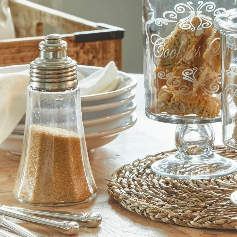 Sie wollen das Savoir Vivre in vollen Zügen genießen? Da nehmen wir Sie gerne beim Wort und empfehlen zum Start diesen zauberhaften Zuckerstreuer im klassischen Design. Denn so wird Ihr Leben wortwörtlich im Handumdrehen ein wenig süßer: Der Zuckerstreuer im Antik-Look ist aus klarem Glas gearbeitet und mit einem Aufsatz aus Messing versehen. Zum Befüllen lässt sich dieser ganz einfach abschrauben. Praktisch dabei: Man kann individuell die Streumenge regulieren. Dreht man im Inneren des Messing-Ausgießers an einer Schraube, kann so der Streufluss verändert werden.