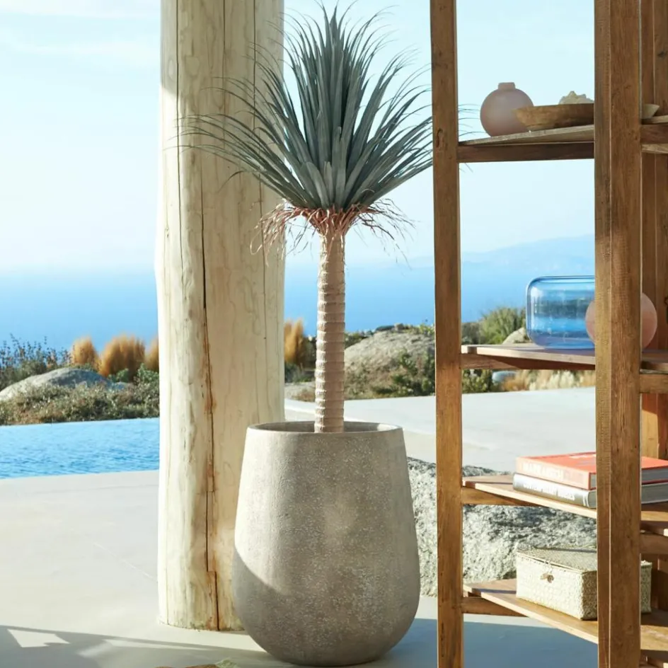 Mit dieser beeindruckenden Deko-Palme holen Sie sich das Flair tropischer Gefilde direkt nach Hause. Der kunstvoll gearbeitete Stamm überzeugt mit natürlichen Strukturen, die wie von der Sonne geküsst wirken, während die filigran geformten Palmwedel eine leichte Bewegung und Lebendigkeit ausstrahlen. Die handbemalten Details sorgen für eine realistische Erscheinung, die selbst erfahrene Pflanzenliebhaber begeistert. Ob im Wohnraum, auf der Terrasse oder als Eyecatcher im Wintergarten – diese Palme zaubert einen Hauch Exotik in jedes Ambiente. Ihre schlanke Form macht sie besonders vielseitig und leicht zu integrieren, ohne aufdringlich zu wirken.