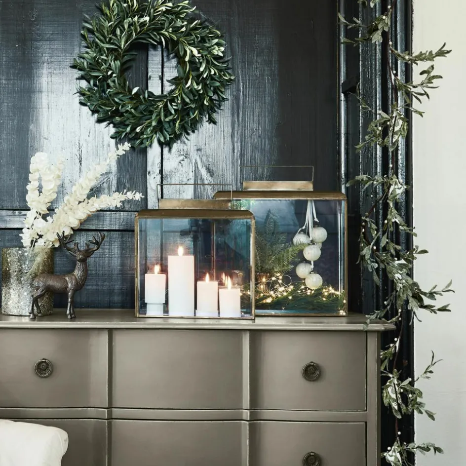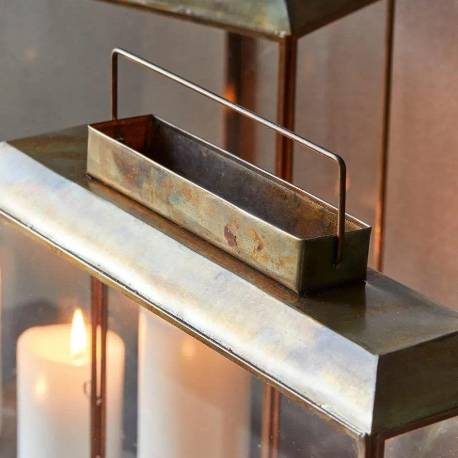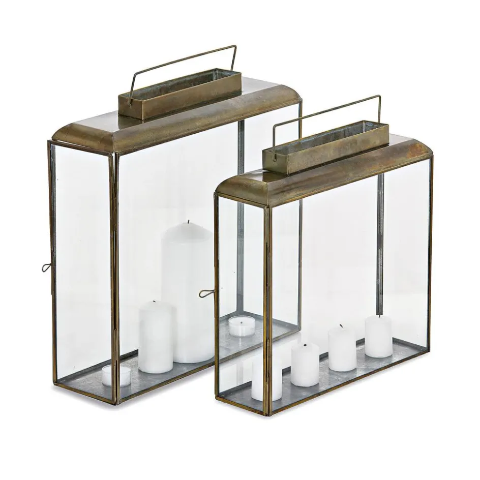 Ein hochwertiges Duo in zwei Größen, das mit seinem klassischen und geradlinigen Industrial-Design punktet. Die schönen Laternen bestehen aus Glas und Eisen mit natürlicher Patina. Sie sind ganz zeitlos gestaltet und schmeicheln jedem Interior. Beide haben je ein Türchen zum Öffnen, sodass Sie ganz leicht Teelichter oder Stumpenkerzen einstellen können. Freuen Sie sich auf romantischen Kerzenschein, und das zu jeder Jahreszeit. Durch die lange, schmale Form passen sie perfekt auf das Fensterbrett. Oder platzieren Sie das edle Doppel im Regal oder auf dem Tisch und setzen sie einen heimeligen Akzent. Wer kreativ werden möchte, könnte die Laternen auch mit Dekorativem bestücken, etwa Muscheln, Steinen oder getrockneten Blüten – lassen Sie Ihrer Deko-Lust freien Lauf.