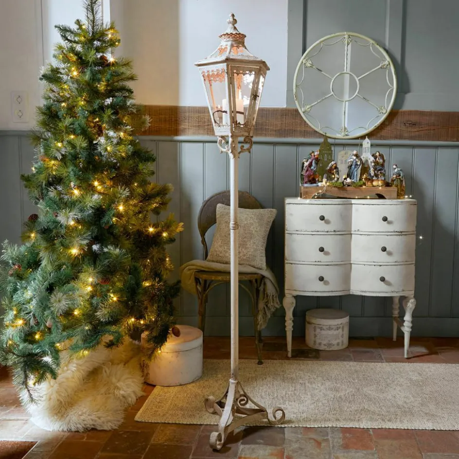 Wie aus einem alten Stadthof entführt, verleiht diese Laterne jeder Umgebung einen Hauch historischer Anmut. Der hohe, elegante Standfuß sorgt nicht nur für Stabilität, sondern hebt das Lichtspiel auf Augenhöhe – ideal, um kleine Szenen im Raum oder auf der Veranda in stimmungsvolles Licht zu tauchen. Der Rahmen aus Eisen zeigt eine sanft patinierte Oberfläche mit nostalgischem Flair, während die klaren Glaseinsätze das Kerzenlicht lebendig flackern lassen. Die Form erinnert an klassische Hoflaternen vergangener Jahrhunderte – zurückhaltend verziert, aber mit wirkungsvoller Präsenz. Ob im Eingangsbereich, neben einer Bank im Garten oder in einer überdachten Laube – sie schenkt Atmosphäre und Geschichte in einem.