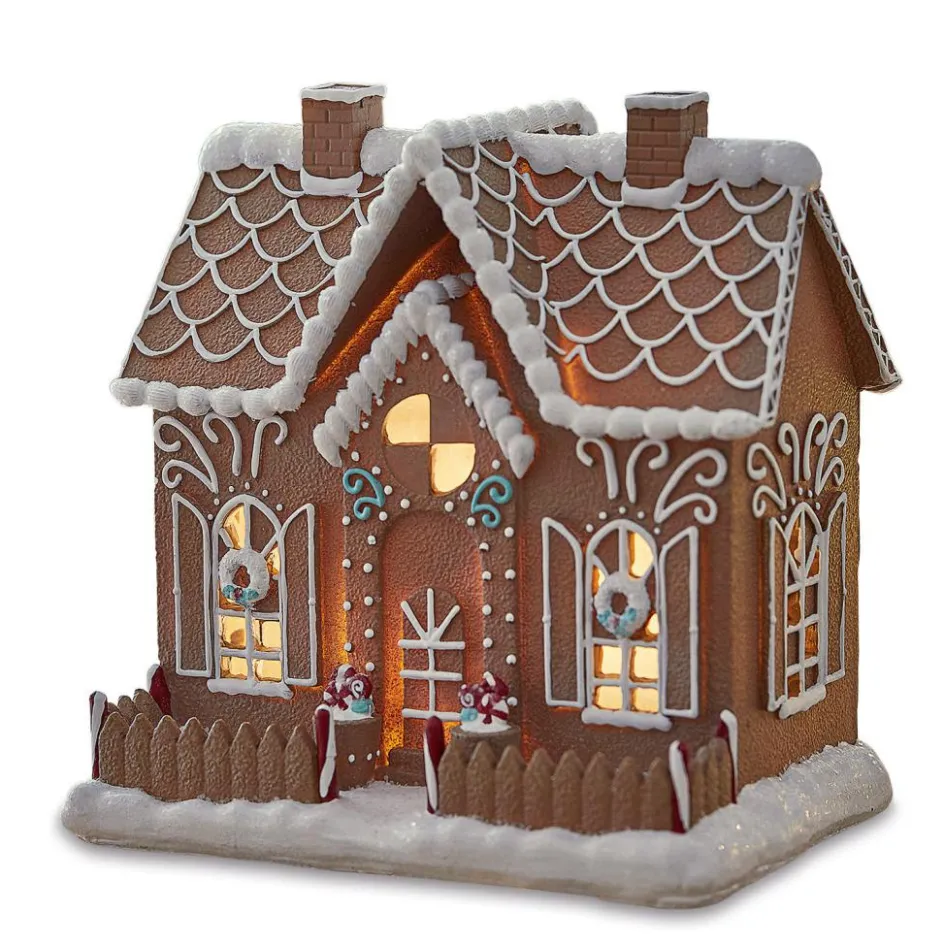 Das perfekte Lebkuchenhaus existiert – und dieses ganz besondere Modell bleibt auch noch für immer schön, denn es ist die detailgenaue Nachbildung eines echten Lebkuchenhäuschens aus Polyresin. Somit trocknet es nie aus und versprüht alle Jahre wieder seinen Zauber. Sämtliche Details wie Kränze, Schnee und Zuckerstangen sind liebevoll ausgestaltet, und es erscheint wirklich wie aus duftendem Lebkuchenteig und Zuckerguss geschaffen. Zudem lässt sich dieses Lieblingsstück auch noch mit bereits integrierten LEDs illuminieren, sodass eine besonders feierliche Optik entsteht. Träumen Sie von der guten, alten Weihnachtsbäckerei und schmücken Sie Ihr Zuhause im festlichen, nostalgischen Stil. Erleben Sie ein wahres Highlight auf dem Tisch, am Fenster oder auf einer Anrichte platziert. Ein wirklich niedliches Accessoire für die Festtage, an dem Sie sich immer wieder erfreuen werden.