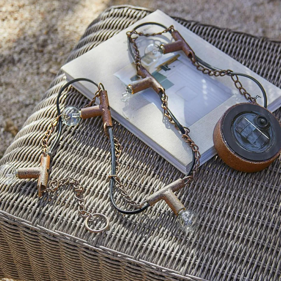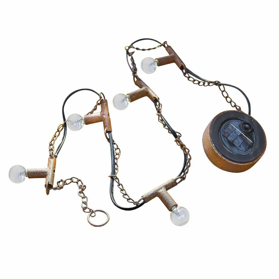 Mit dieser Solar-Lichterkette verleihen Sie Ihrem Außenbereich eine stimmungsvolle Beleuchtung und eine Extraportion Charme. Das Antikbraun-Finish des Eisenmaterials sorgt für eine nostalgische Note, während die filigranen Glühbirnen einen warmen Lichtschein verbreiten, der perfekt zu entspannten Abenden im Freien passt. Dank der umweltfreundlichen Solarenergie lädt sich die Kette tagsüber auf und entfaltet bei Dämmerung automatisch ihre volle Leuchtkraft – ganz ohne Stromanschluss. Die Kombination aus Funktionalität und rustikalem Design macht sie zu einem idealen Accessoire für Gartenpartys, Terrassen oder lauschige Balkone. Ein stilvoller Blickfang, der Atmosphäre schafft.