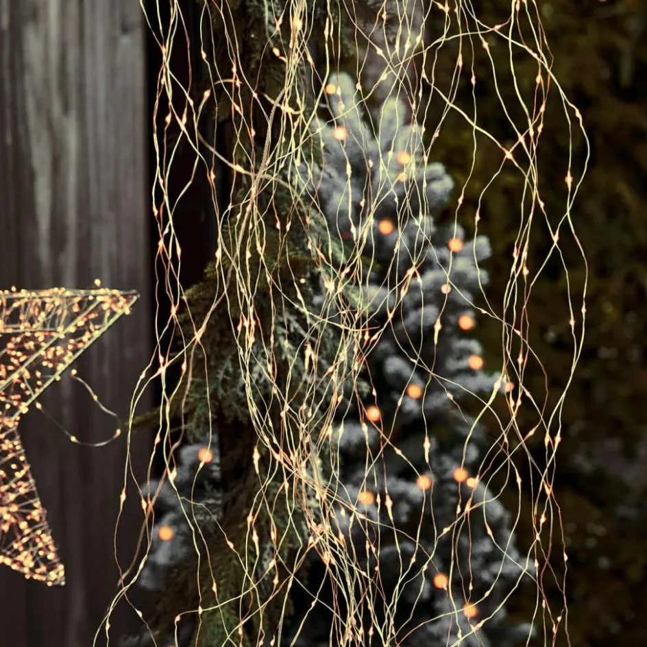 Diese runde Lichterkette verwandelt jede dunkle Ecke in ein Lichtmeer – ganz gleich, ob über einen Baum gelegt oder als leuchtende Krone im Outdoorbereich arrangiert. Unzählige zarte Stränge mit insgesamt 1.152 warmweißen LEDs fallen wie ein glitzernder Lichtvorhang herab und verströmen eine märchenhafte Stimmung. Besonders in der dunklen Jahreszeit entsteht durch das rundum abstrahlende Licht eine beinahe magische Wirkung – wie Sternenregen, der leise vom Himmel fällt. Und das Beste: Die Lichterkette ist für den Außenbereich geeignet und somit ideal für winterliche Gartenmomente, adventliche Eingangsbereiche oder festliche Outdoor-Inszenierungen.