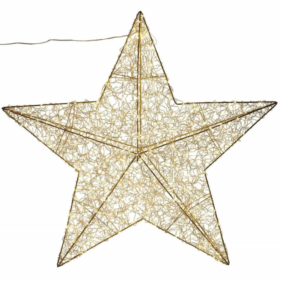 Verleihen Sie Ihrer Weihnachtsdekoration einen funkelnden Glanz mit unserem beeindruckenden LED-Stern. Das goldfarbene Eisengestell mit seiner filigranen Struktur und die 720 warmweißen LEDs, die über eine großzügige Fläche von ca. 80 cm verteilt sind, sorgen für ein strahlendes Highlight in jedem Raum oder Garten. Das warme, sanfte Licht der LEDs schafft eine einladende und festliche Atmosphäre, die jeden in ihren Bann zieht. Mit einer 5 Meter langen Zuleitung und der Schutzklasse IP44 ist dieser Leuchtstern flexibel einsetzbar und sicher sowohl für den Innen- als auch den Außenbereich geeignet. Lassen Sie sich von der eleganten Haptik und dem festlichen Charme dieses einzigartigen Leuchtobjekts verzaubern und genießen Sie die magische Weihnachtsstimmung.