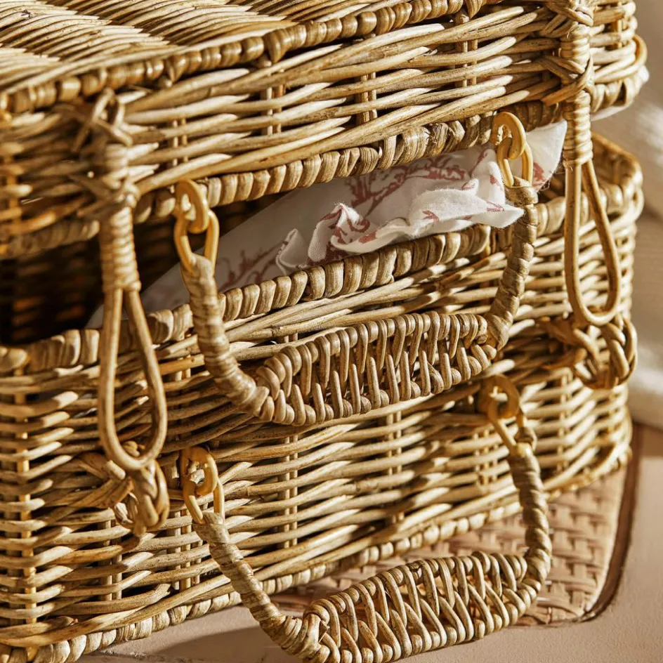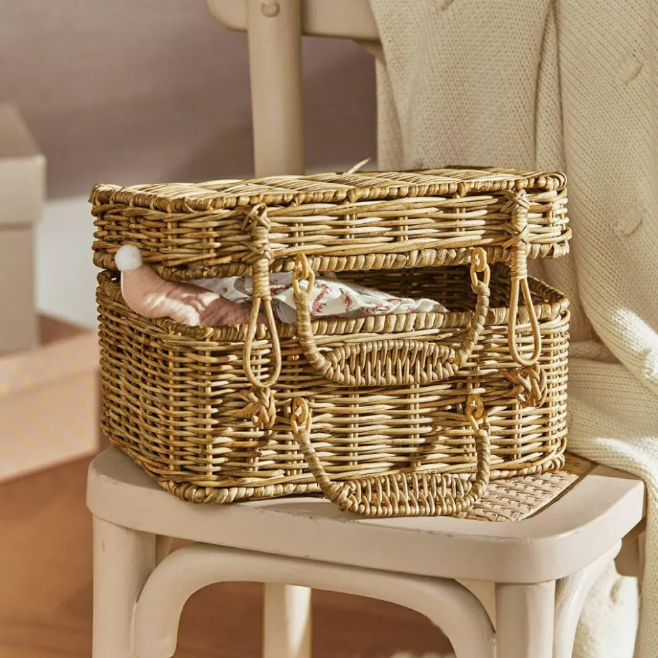 Ein Koffer, der Kinderträume wahr werden lässt! Der leichte Rattankoffer bringt durch sein liebevolles Flechtmuster und seine natürliche Optik eine besondere Note in jedes Kinderzimmer. Egal, ob als Schatztruhe für kleine Abenteurer oder als stilvoller Begleiter für das nächste Übernachtungsabenteuer – dieser Koffer ist vielseitig einsetzbar und dabei robust dank seines verstärkten Metallrahmens. Der praktische Griff macht das Tragen auch für die Kleinsten kinderleicht, während die liebevoll geflochtene Struktur den Koffer zum stilvollen Accessoire macht. Ein Stück, das für Freude sorgt und gleichzeitig Ordnung bringt.