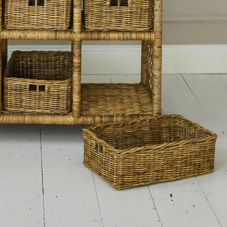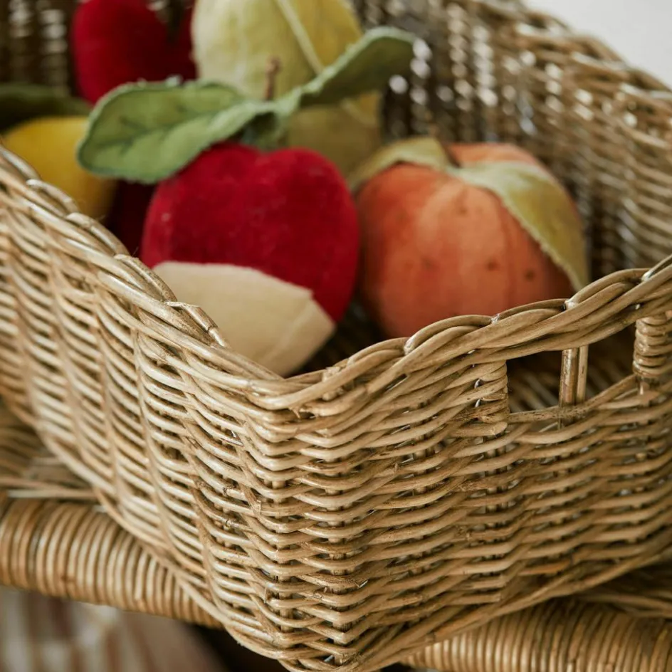 Ein bisschen Ordnung, ganz viel Spielspaß – dieses zweiteilige Korbset sorgt für beides. Die Körbchen sind so klein, dass sie perfekt in Regale, Puppenhäuser oder Kaufläden passen – und doch groß genug, um kleine Kostbarkeiten sicher zu bewahren. Vom Holzobst über Bauklötzchen bis hin zu kleinen Stofftieren finden hier alle ihre eigene kleine Heimat. Die filigrane Flechtung aus naturfarbenem Rattan bringt nicht nur eine angenehme Haptik mit sich, sondern auch eine warme, natürliche Ausstrahlung, die sich wunderbar in natürliche Kinderzimmer einfügt. Ein Lieblingsstück für alle, die Ordnung charmant verpacken möchten.