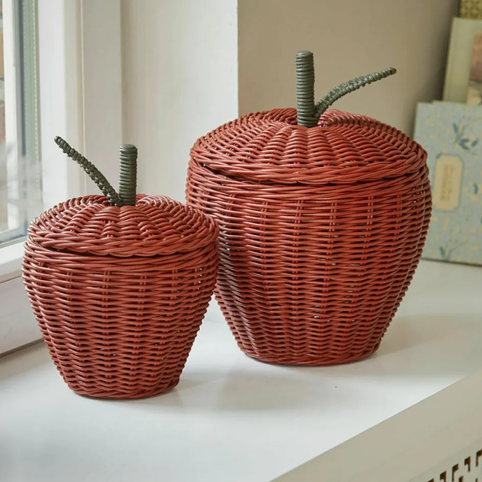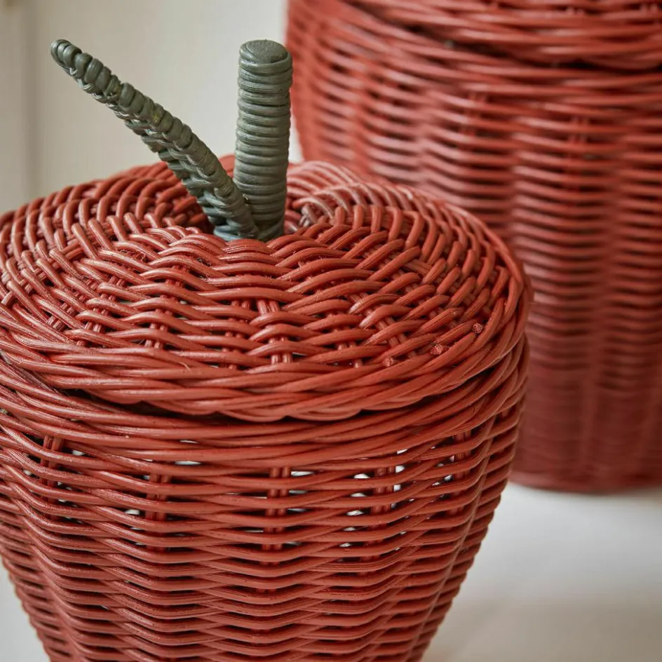 So hübsch kann Ordnung sein: Dieses 2er-Set in liebevoller Apfelform bringt nicht nur Farbe, sondern auch jede Menge Spielspaß ins Kinderzimmer. Die Körbe sind aus geflochtenem Rattan gefertigt, das mit seiner natürlichen Oberfläche und warmen Haptik begeistert. Der leuchtend rote Farbton erinnert an frische Äpfel, während die Deckel mit ihren dekorativen Stielen das Obst-Design charmant abrunden. Die beiden Größen bieten Platz für kleine Schätze und Alltagsdinge – und machen Aufräumen fast zum Lieblingsspiel. Ein fruchtiges Duo, das spielerisch für mehr Ordnung sorgt.
