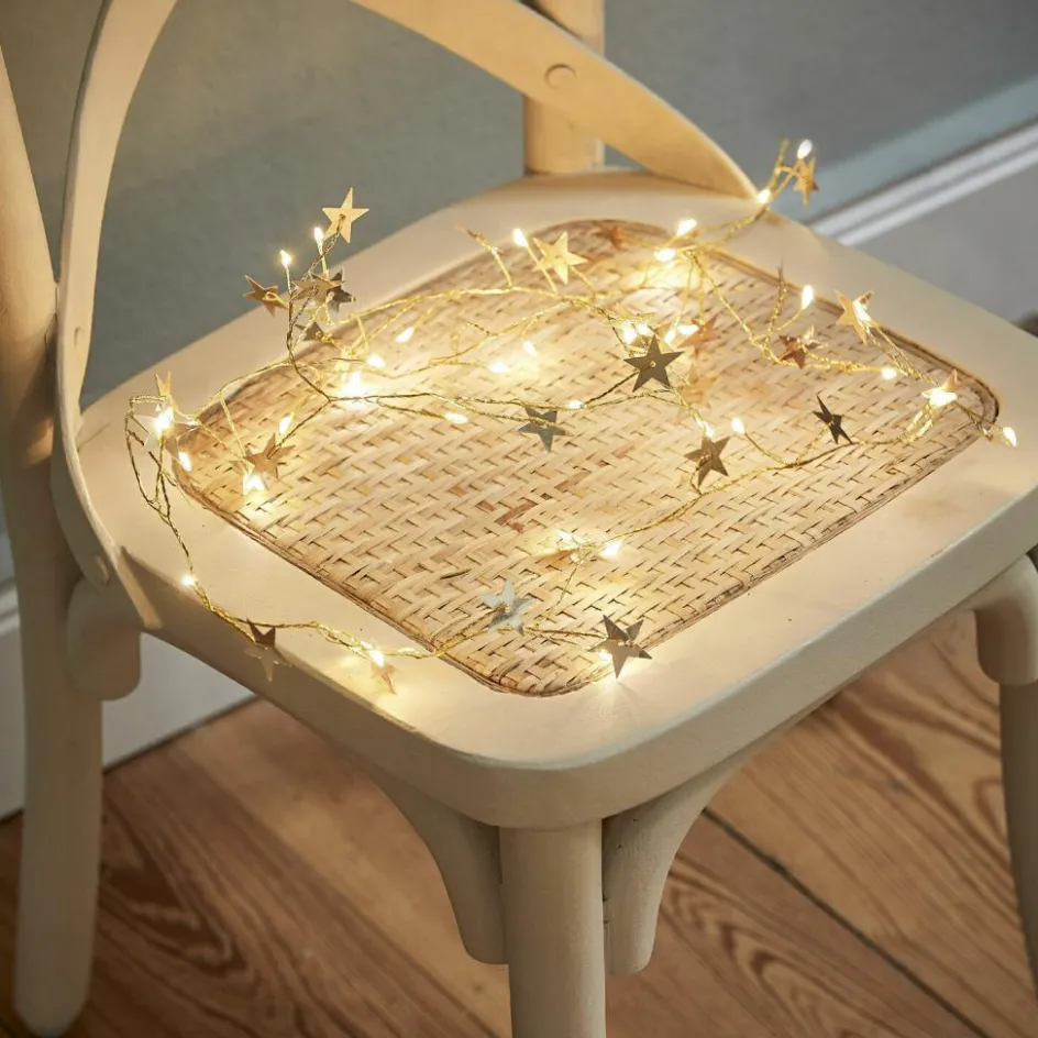 Mit dieser 1,20 m langen LED-Lichterkette können Sie die Sterne direkt in Ihr Heim holen. Jede der 35 warmweißen LEDs ist ein funkelnder Stern am Firmament Ihrer Wohnwelt, ein kleiner Lichtpunkt, der Ruhe und Frieden ausstrahlt. Diese Lichterkette ist eine Hommage an die Sternbilder, die den Nachthimmel zieren, und geeignet, um sowohl die Weihnachtszeit als auch alltägliche Momente mit einer beruhigenden Präsenz zu erhellen. Die Sterne sind nicht nur Symbole der Träume, sondern auch Zeichen der Freude. Batteriebetrieben bietet diese Lichterkette uneingeschränkte Flexibilität beim Dekorieren, frei von der Notwendigkeit, eine Steckdose in der Nähe zu haben. Sie ist perfekt für das Kinderzimmer, wo sie als nächtliche Wächter fungiert und sanft über den Schlaf wacht, oder als elegantes Detail, das Ihrem Zuhause zu Weihnachten ein warmes, einladendes Flair verleiht.