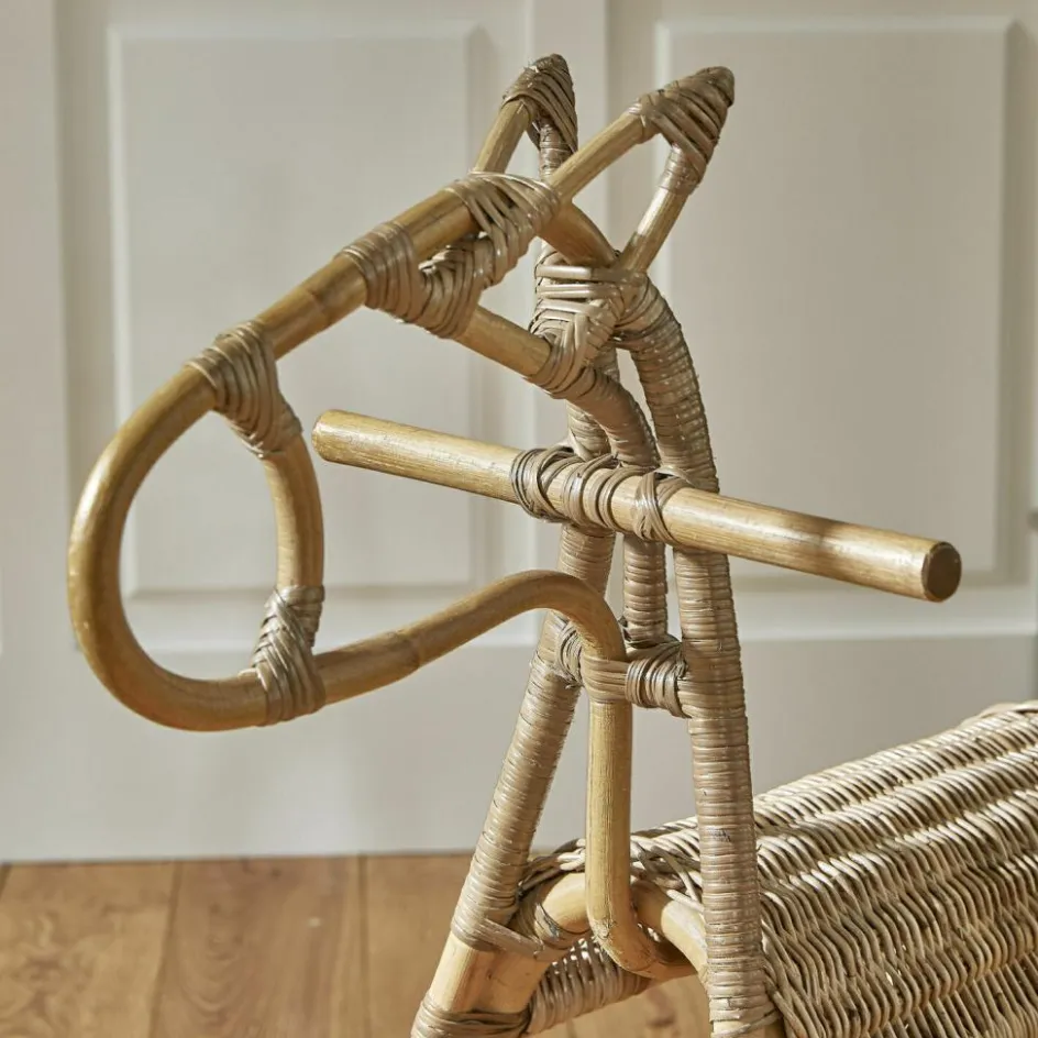 Erleben Sie die Magie eines klassischen Spielzeugs mit unserem wunderschönen Schaukelpferd aus Rattan. Dieses handgefertigte Kunstwerk besticht durch seine elegante Form und die warme, natürliche Farbgebung, die jedem Kinderzimmer eine gemütliche Atmosphäre verleiht. Die geschmeidige Haptik des Rattans und die sorgfältige Verarbeitung sorgen für ein sicheres und angenehmes Spielerlebnis. Ideal für kleine Reiter, die endlose Stunden Freude am Schaukeln haben werden, während die leichte Konstruktion das Transportieren kinderleicht macht. Ein wahres Meisterwerk traditioneller Handwerkskunst, das Generationen überdauert.
