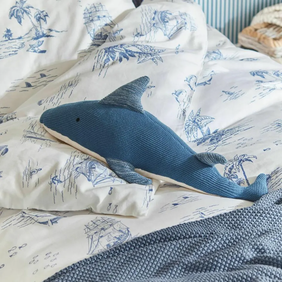 Dieses weiche Stofftier in Form eines Haies bringt den Ozean ins Kinderzimmer. Gefertigt aus angenehmem Strickmaterial in harmonischen Blautönen, überzeugt es durch seine liebevollen Details und die weiche Füllung. Ob als beruhigender Begleiter beim Einschlafen oder als treuer Freund auf Reisen – dieses Stofftier sorgt für Geborgenheit und Fantasie. Das authentische Design mit der markanten Rückenflosse macht den Hai zum besonderen Blickfang in jeder Kinderzimmerwelt.