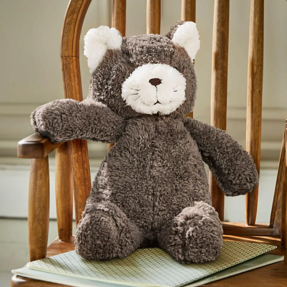 Mit ihrer samtweichen Oberfläche, den runden Pfoten und dem verschmitzten Gesichtsausdruck ist diese flauschige Stoffkatze ein echtes Seelenwesen – sanft, verspielt und immer für eine Umarmung zu haben. Das harmonische Zusammenspiel aus warmem Braun und weißem Schnäuzchen verleiht ihr einen ruhigen, natürlichen Ausdruck, der Kinderherzen höherschlagen lässt. Ob als Trösterin bei kleinen Wehwehchen oder als ständige Kuschelgefährtin – sie schenkt Sicherheit und Nähe. Die leicht zu greifende Form liegt gut in kleinen Händen, und das robuste, waschbare Material hält selbst dem lebhaftesten Spieltag stand. Eine charmante Begleiterin für viele liebevolle Kindermomente.