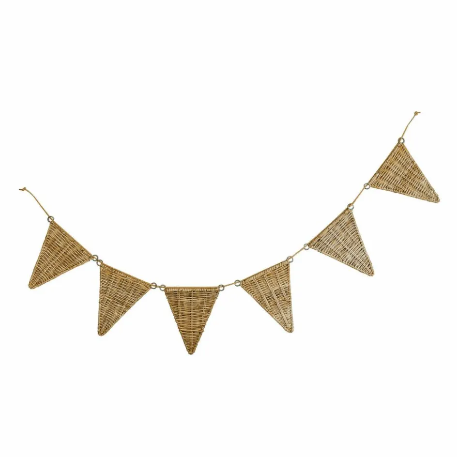 Verleihen Sie Ihren Räumen eine ganz besondere Note mit dieser außergewöhnlichen Wimpelgirlande aus geflochtenem Rattan. Während Wimpelgirlanden üblicherweise aus Stoff gefertigt sind, setzt dieses Modell auf den natürlichen Charme von Rattan und Jutekordeln. Die naturbelassenen Materialien schaffen eine stilvolle Verbindung von traditionellem Design und innovativen Materialien, die perfekt in jedes Kinderzimmer oder auf jede Feier passt. Egal, ob für Geburtstagsfeiern, sommerliche Gartenfeste oder einfach als tägliches Dekorelement – diese Girlande bringt einen Hauch von Natürlichkeit und Originalität in jeden Raum.