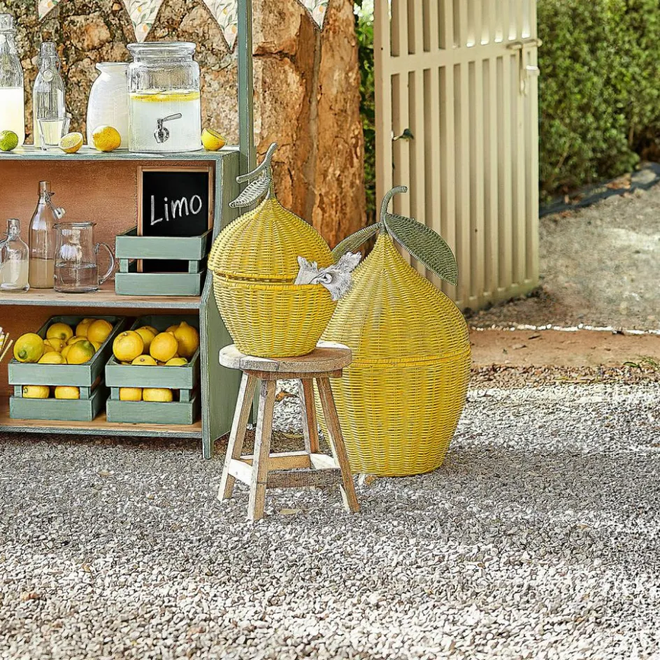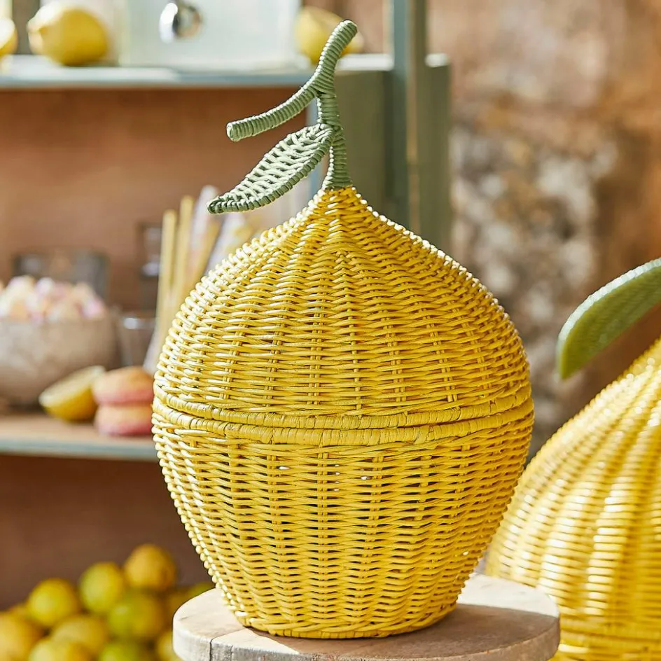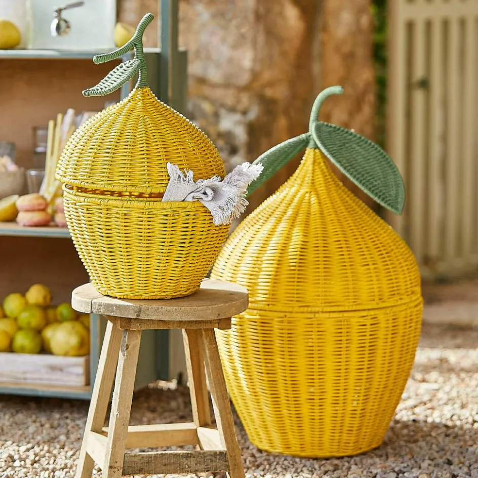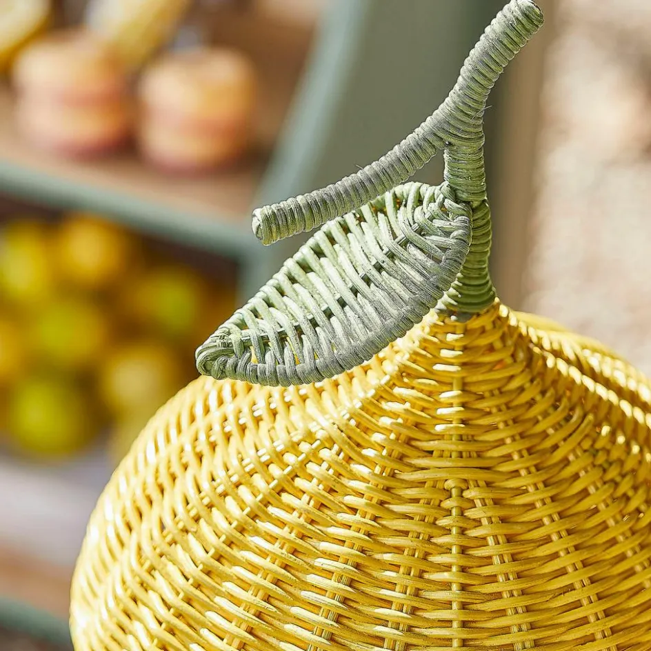 Das Zitronenkorb-Set bringt Farbe und Frische in Ihr Zuhause. Die leuchtend gelben Rattankörbe, geformt wie große, saftige Zitronen, sind ein fröhliches Highlight, das jeden Raum aufwertet. Besonders praktisch: Unter dem dekorativen Äußeren verbirgt sich jede Menge Stauraum. Ob in der Küche zur Aufbewahrung von Zitronen, auf einem Limonadenstand für den Sommer oder als auffällige Dekoration im Kinderzimmer – dieses Set vereint Funktionalität und stilvolles Design. Die stabile Eisenbasis sorgt für Langlebigkeit, während die feine Flechtarbeit des Rattans für das gewisse Etwas sorgt.