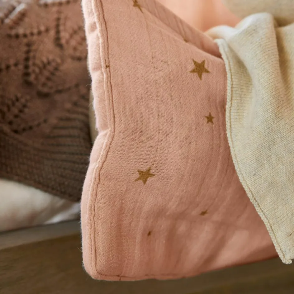 Diese charmante Aufbewahrungstasche aus hochwertigem Musselin ist nicht nur praktisch, sondern auch ein echter Hingucker im Kinderzimmer. Das zauberhafte Sternenmuster auf dem weichen, aber strapazierfähigen Stoff verleiht der Tasche eine besondere Note. Mit ihren Bändern lässt sie sich leicht aufhängen, wodurch sie ideal zur Aufbewahrung von Spielzeug, Pflegeprodukten oder kleinen Kleidungsstücken geeignet ist. Ob am Kinderwagen oder im Kinderzimmer am Babybett, diese Tasche ist ein stilvolles und funktionales Accessoire für den Alltag.