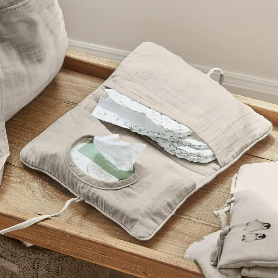 Erleben Sie den Komfort und die Eleganz dieser Feuchttücher-Tasche, die speziell für unterwegs entworfen wurde. Hergestellt aus weichem, atmungsaktivem Musselin-Stoff, bietet diese Tasche nicht nur eine angenehme Haptik, sondern auch eine stilvolle Lösung für die Aufbewahrung von Feuchttüchern (nicht inkl.). Das schlichte Design in neutralen Farben passt perfekt zu jedem Stil und sorgt dafür, dass Sie stets vorbereitet sind, egal wohin Sie gehen. Mit dieser Tasche haben Sie immer griffbereite Feuchttücher für Ihr Baby zur Hand, sodass kleine Missgeschicke schnell behoben sind. Ein unverzichtbares Accessoire für alle Eltern.