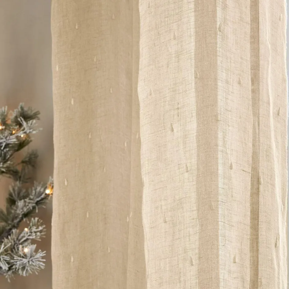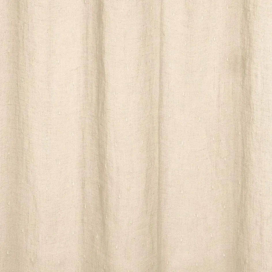 Ein Vorhang wie ein Sommerhauch – leicht, natürlich und voller Sanftmut. Das feine Leinen in natürlichem Ton schenkt dem Raum eine ruhige, warme Ausstrahlung, die ideal fürs Baby- oder Kinderzimmer ist. Liebevoll eingestickte Tropfenmuster tanzen wie kleine Regentropfen über die Fläche und sorgen für charmante Details, die bei jedem Lichteinfall zur Geltung kommen. Die Bindebänder verleihen dem Vorhang eine verspielte Note und machen das Anbringen kinderleicht. Ein Textil, das nicht nur Sichtschutz bietet, sondern auch Geborgenheit schafft.