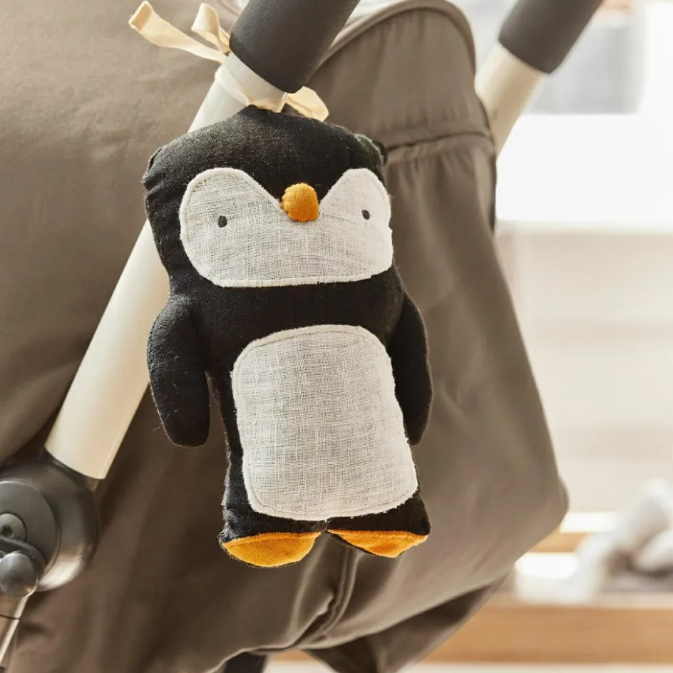 Erleben Sie die Freude, wenn Ihr Baby diesen entzückenden Pinguin-Kinderwagenanhänger entdeckt! Mit seiner weichen Haptik und der liebevollen Gestaltung aus hochwertigem Leinen wird dieser Anhänger schnell zum treuen Begleiter auf Spaziergängen. Die niedlichen Details in Weiß und Orange verleihen ihm einen besonderen Charme, der nicht nur Babys, sondern auch Eltern begeistert. Praktisch und stilvoll sorgt er für Ablenkung und Spaß unterwegs, während er gleichzeitig durch seine natürliche Optik besticht.