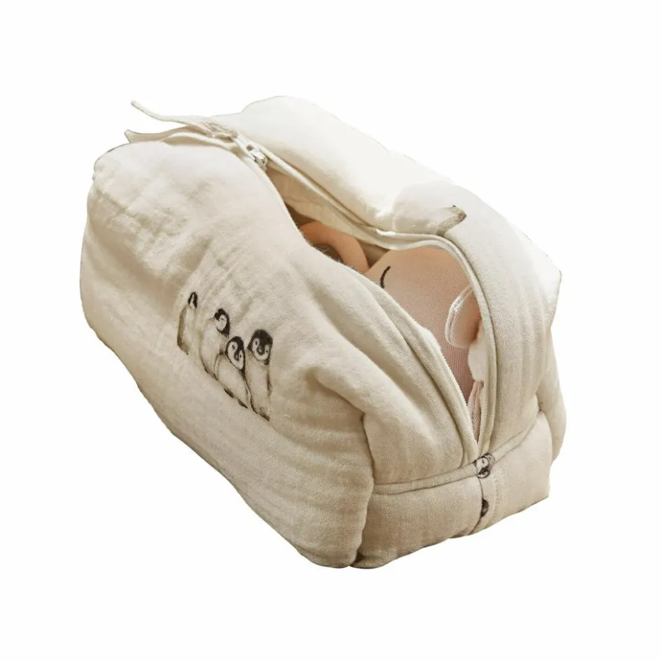 Diese zauberhafte Kosmetiktasche aus weichem, wattiertem und atmungsaktivem Musselin-Stoff begeistert mit ihrem liebevollen Pinguinmuster. Die sanfte Haptik und die neutrale Farbgebung machen sie zum perfekten Begleiter für unterwegs. Ob für Eltern oder Kinder, die Tasche bietet genügend Platz für alle wichtigen Dinge, die stets griffbereit sein müssen. Der hochwertige Reißverschluss garantiert sicheres Verschließen, während die liebevolle Verarbeitung für langlebigen Gebrauch sorgt.