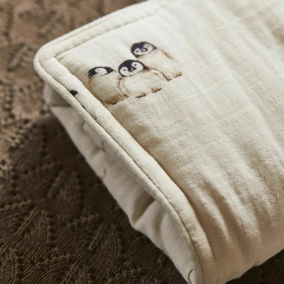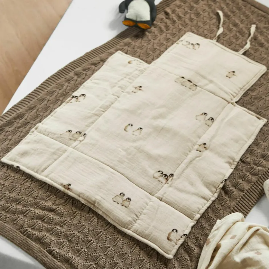 Diese liebevoll gestaltete Wickelunterlage überzeugt mit einem entzückenden Pinguinmuster und ist aus hochwertiger, reiner Baumwolle gefertigt. Das Musselin-Gewebe fühlt sich besonders weich an und ist zugleich atmungsaktiv, was den Komfort für Ihr Baby maximiert. Natürlich ist die Unterlage auch weich wattiert. Durch die hohe Absorptionsfähigkeit ist diese Unterlage ideal für den täglichen Gebrauch. Praktisch und leicht lässt sie sich platzsparend zusammenfalten und einfach transportieren – perfekt für unterwegs.