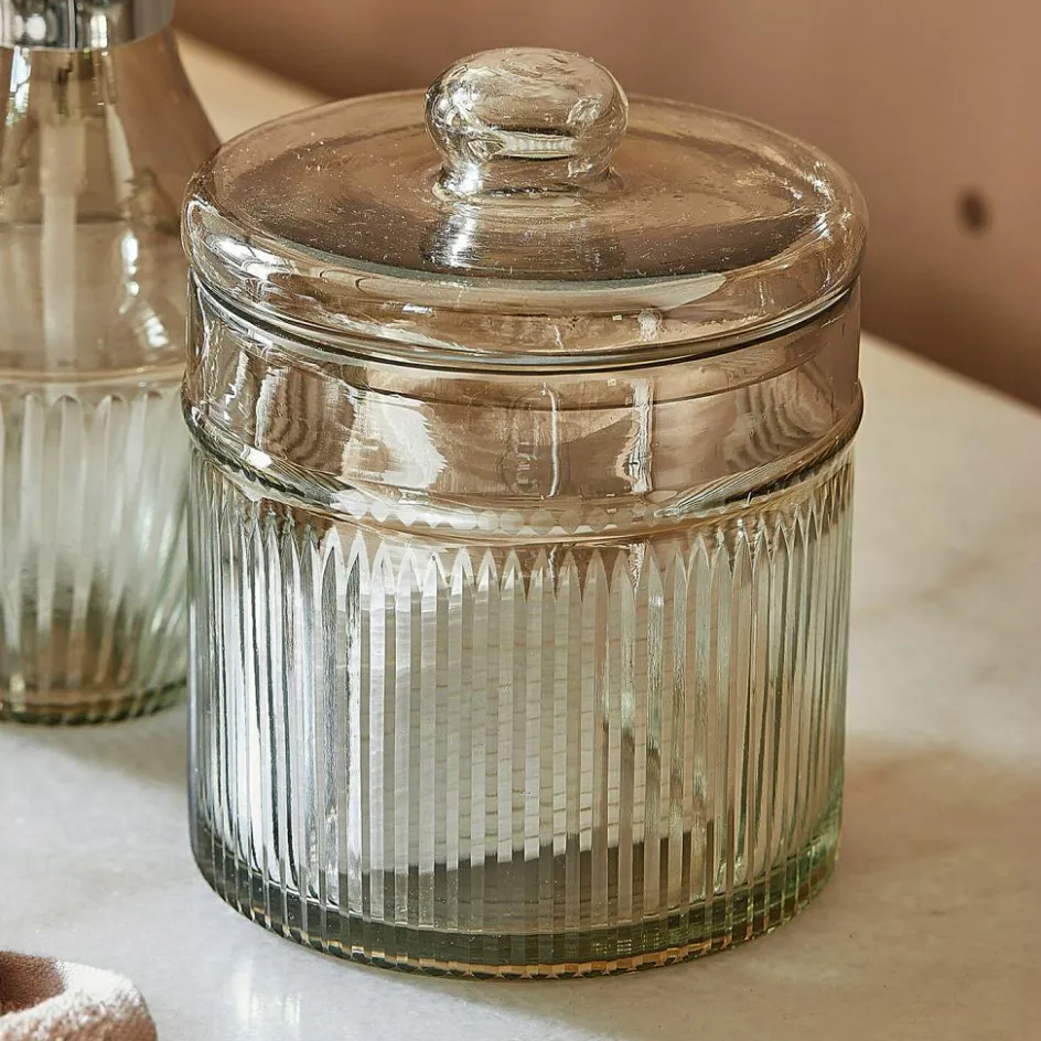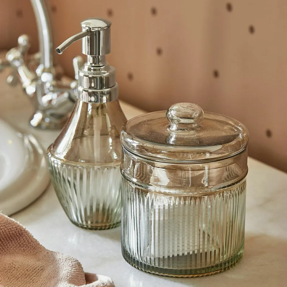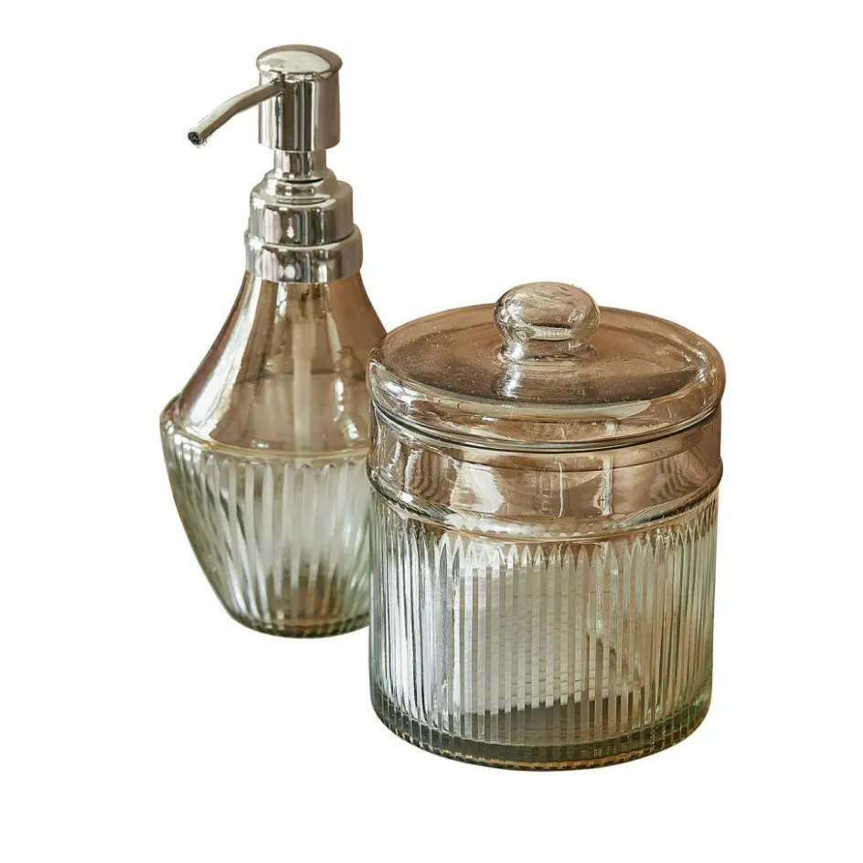 Tauchen Sie ein in die Welt zeitloser Eleganz mit unserem handgefertigten Bad-Set aus mundgeblasenem Glas. Jedes Stück, von der Seifenspenderflasche bis zur stilvollen Aufbewahrungsdose, zeugt von meisterhafter Handwerkskunst und einer Liebe zum Detail, die Ihresgleichen sucht. Die leichte Farbtönung des Glases verleiht Ihrem Badezimmer eine warme, beruhigende Atmosphäre, während die hochwertige Verarbeitung für eine lange Lebensdauer sorgt. Dieses Set ist nicht nur ein funktionales Accessoire, sondern ein echtes Highlight, das Ihrem Zuhause eine exklusive Note verleiht.