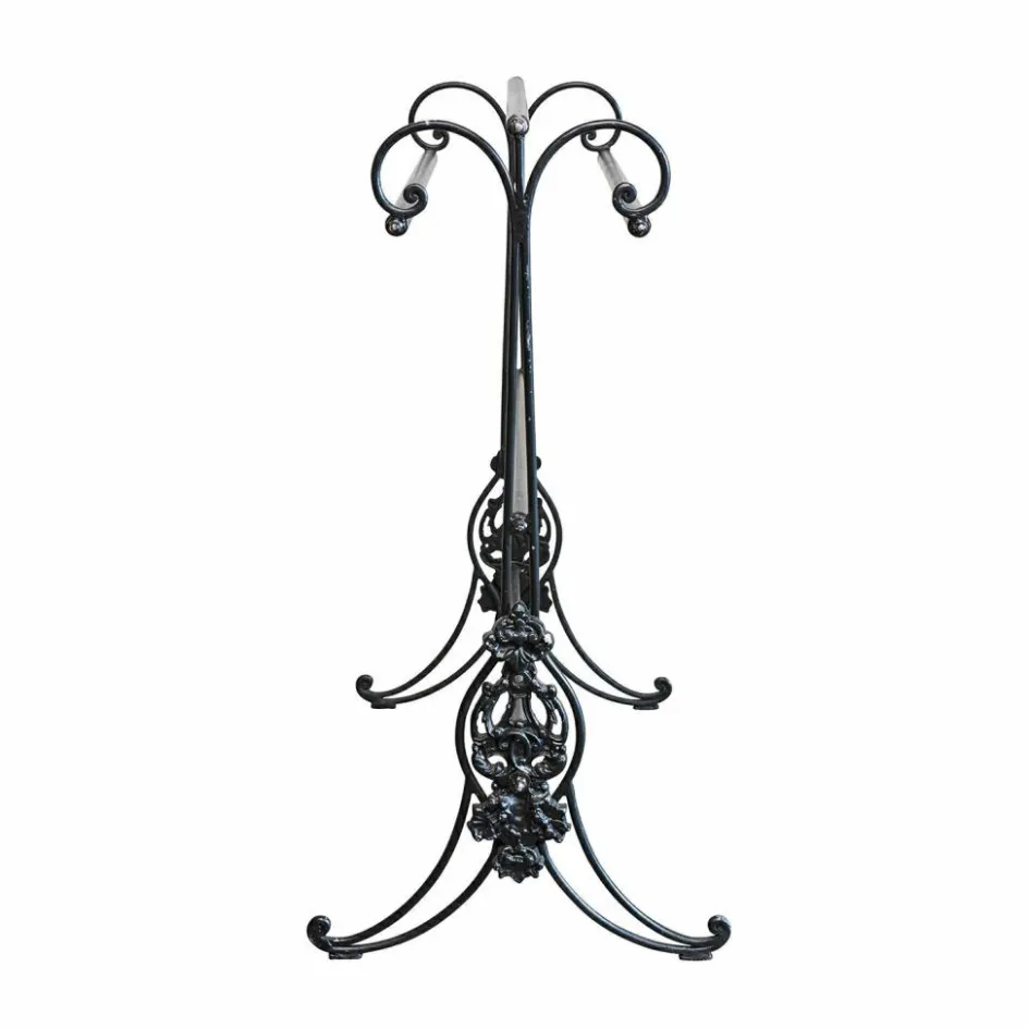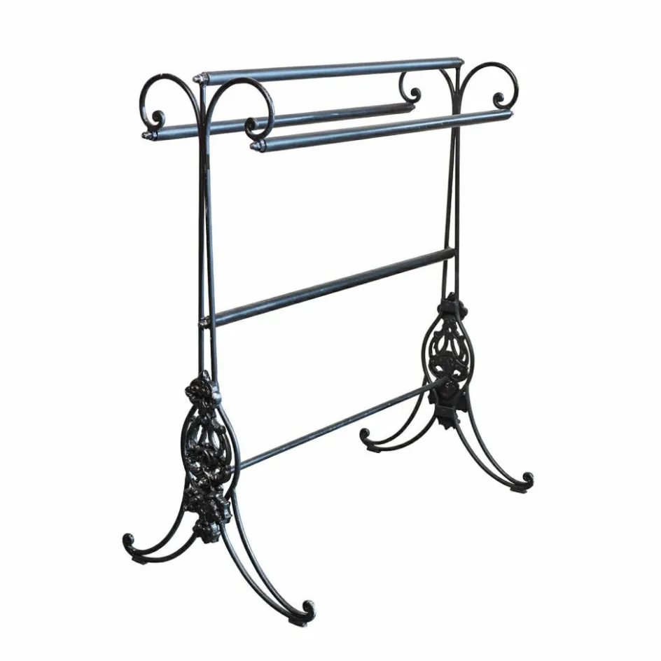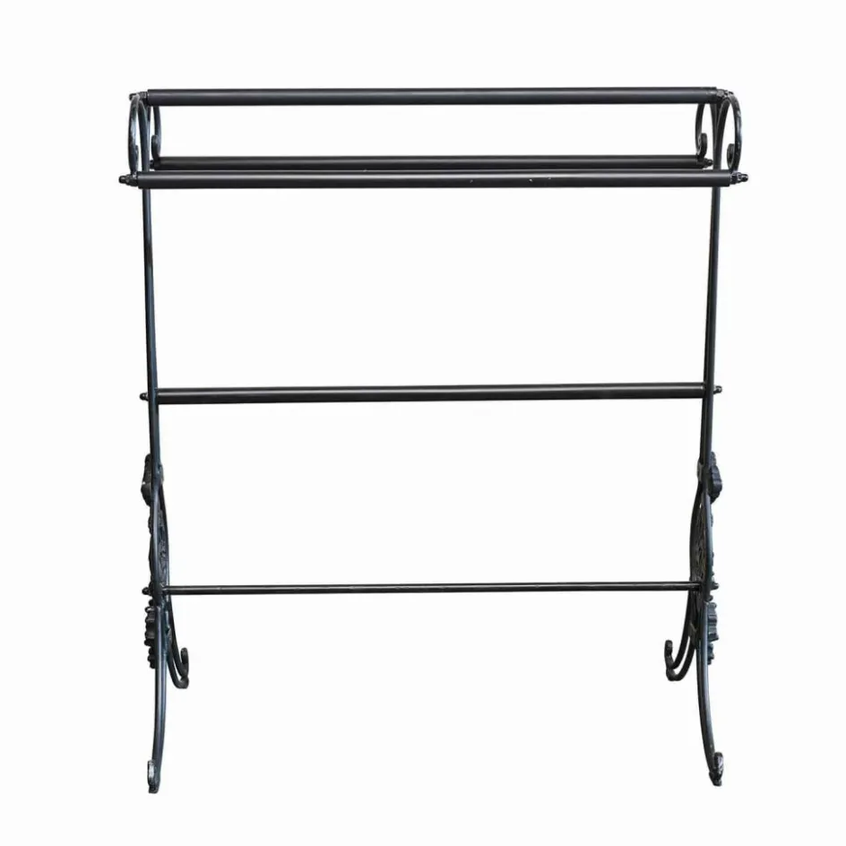 Man könnte meinen, dieser Handtuchhalter stamme aus einem französischen Landhaus vergangener Jahrhunderte: Die kunstvollen Ornamente wirken wie mit der Hand geschmiedet, die elegant geschwungenen Eisenstreben erzählen von einer Zeit, in der Gebrauchsstücke noch dekorative Meisterwerke waren. Das tiefmatte Schwarz des Metalls hebt die detailverliebte Struktur eindrucksvoll hervor und bringt nostalgisches Flair in jedes Badezimmer. Auf drei Ebenen lassen sich Handtücher großzügig aufhängen – mit ausreichend Abstand für ein luftiges Trocknen. Ob als charmanter Kontrast in modernen Interieurs oder harmonisch eingebettet in klassische Räume – dieser Handtuchständer ist nicht nur praktisch, sondern ein echtes Statement.