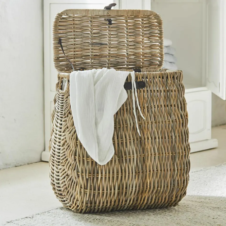 Der Wäschekorb aus Rattan ist mehr als nur ein praktischer Haushaltshelfer – er ist ein stilvolles Accessoire, das Ihrem Raum Wärme und Natürlichkeit verleiht. Die organischen Rattanflechten verleihen dem Korb seine stabile Struktur und seine charmante Optik, während der abnehmbare und waschbare Innenbezug die tägliche Pflege erleichtert. Der Lederverschluss fügt eine luxuriöse Note hinzu, die den natürlichen Charakter des Wäschekorbs perfekt unterstreicht. Dieser Korb ist nicht nur ein funktionaler Aufbewahrungsort für Ihre Wäsche, sondern auch ein stilvolles Element, das in jedem Raum Akzente setzt.