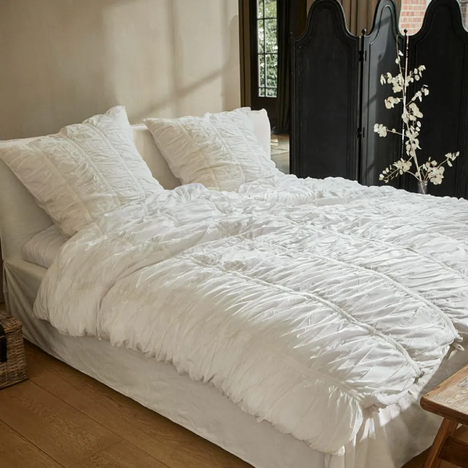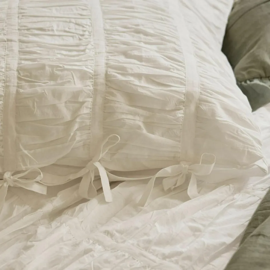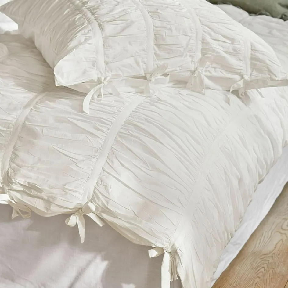 Bei dieser Bettwäsche sind süße Träume (fast) garantiert. Auf jeden Fall wird Sie das nostalgische Design mit den duftigen Raffungen in vergangene Zeiten entführen, als Bettwäsche nicht schlicht und praktisch, sondern vor allem im noblen Landhaus-Ambiente immer opulent verziert war. Und immer aus hochwertigen Materialqualitäten gefertigt, die für ein besonderes Wohlgefühl beim Hineinkuscheln sorgen. Deshalb besteht diese Bettwäsche aus reiner Baumwolle, die angenehm atmungsaktiv ist und mit ihrer weichen Haptik die Haut rundum verwöhnt. Also beste Voraussetzungen für einen erholsamen Schlaf und süße Träume! Perfekt wird die traditionelle Optik durch die hübschen Bindebänder, mit denen die klassisch weiße Bettwäsche geschlossen wird.