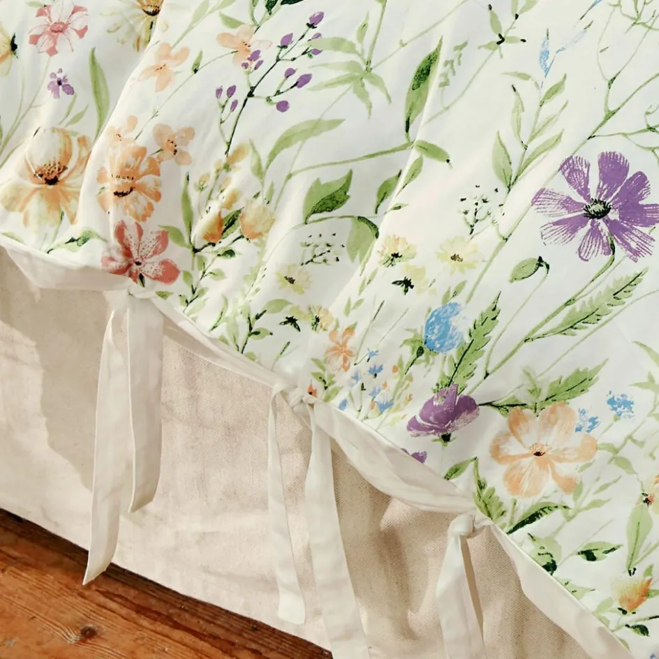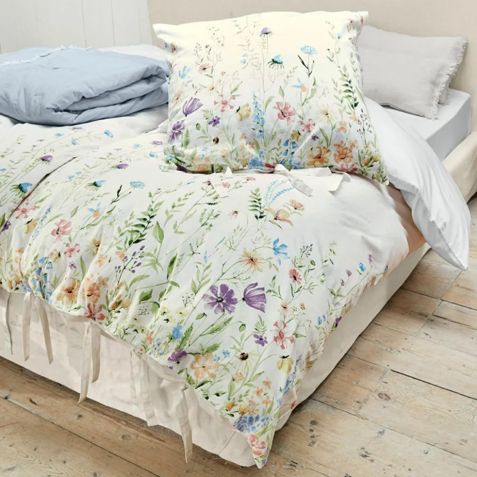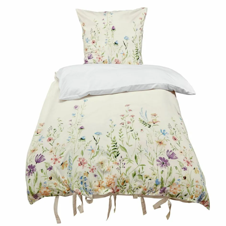 Verwandeln Sie Ihr Schlafzimmer in eine blühende Oase der Ruhe mit dieser bezaubernden Bettwäsche aus 100% Baumwolle. Das liebevoll gestaltete Blumenmuster bringt die Leichtigkeit und Frische einer Sommerwiese direkt in Ihr Zuhause. Die zarten Pastellfarben sind perfekt aufeinander abgestimmt und schaffen eine beruhigende, harmonische Atmosphäre. Diese Bettwäsche ist nicht nur ein optischer Genuss, sondern auch ein haptisches Vergnügen – die natürliche Baumwolle fühlt sich angenehm weich und sanft auf der Haut an. Praktische Bindebänder verleihen der Bettwäsche einen charmanten Look und sorgen dafür, dass der Bettbezug stets perfekt sitzt. Genießen Sie entspannte Nächte in einem Bett, das nicht nur komfortabel, sondern auch wunderschön anzusehen ist.