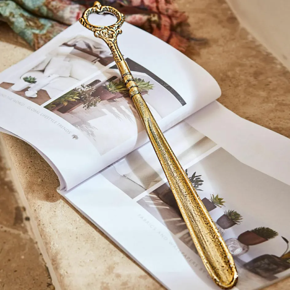 Ob als praktisches Geschenk und Alltagserleichterer oder als originelles Deko-Highlight auf der Flurkommode: Der robuste Schuhlöffel aus Aluminium mit einem edlen, silberfarbenen Antik-Finish kann in jeder Rolle glänzen. Zum besonderen Hingucker wird das gute Stück mit Erbstück-Charakter dank der aufwändig verzierten Aufhängeöse im antiken Stil.