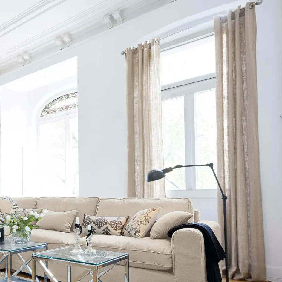 Ob als Raumtrenner oder klassischer Vorhang. So sperren Sie mit einem Handgriff neugierige Blicke aus und sorgen zugleich für ein wunderbar warmes Licht im Raum – perfekt für alle, die beispielsweise im Schlafzimmer nicht unbedingt von der Sonne geweckt werden wollen, es jedoch auch nicht so gerne komplett dunkel mögen. Der hochwertig gewebte Leinenvorhang passt sich zudem zuverlässig jeder Einrichtung und jedem Stil an. Dank eingearbeiteter Metallösen ist der Vorhang darüber hinaus ruckzuck auf jede handelsübliche Gardinenstange aufgefädelt und einsatzbereit
